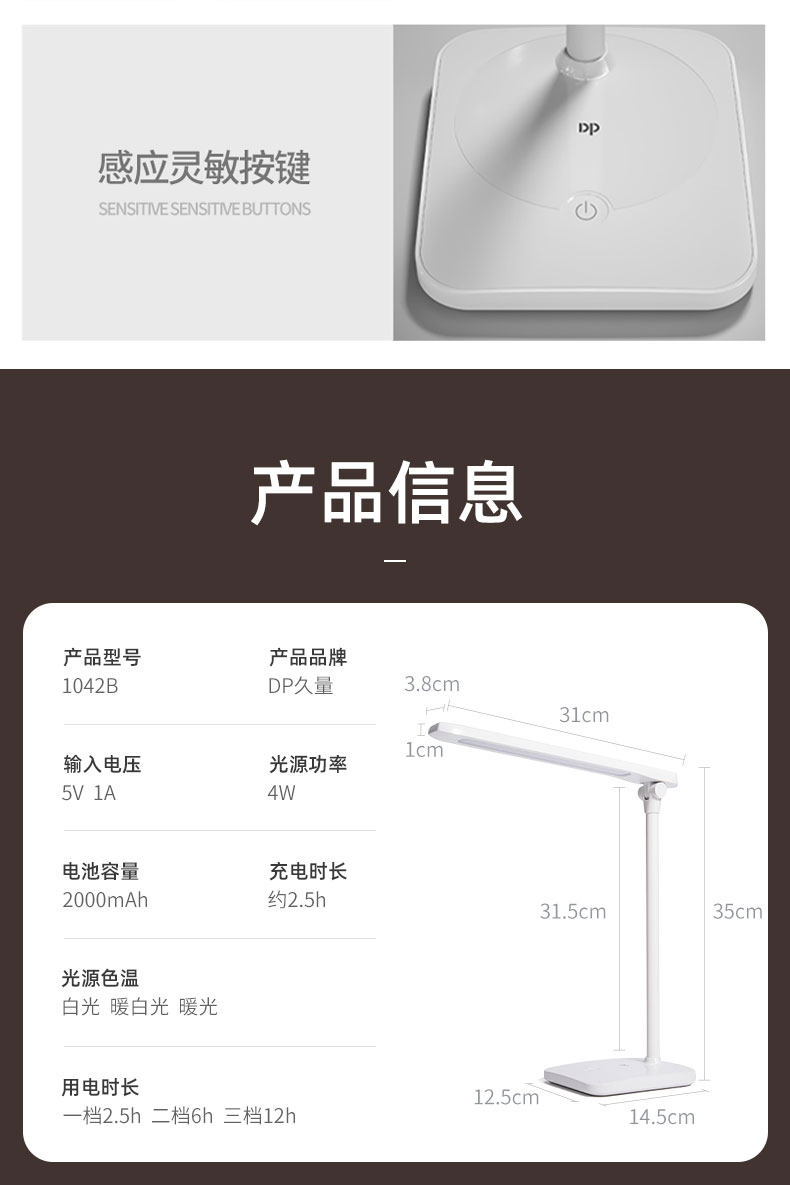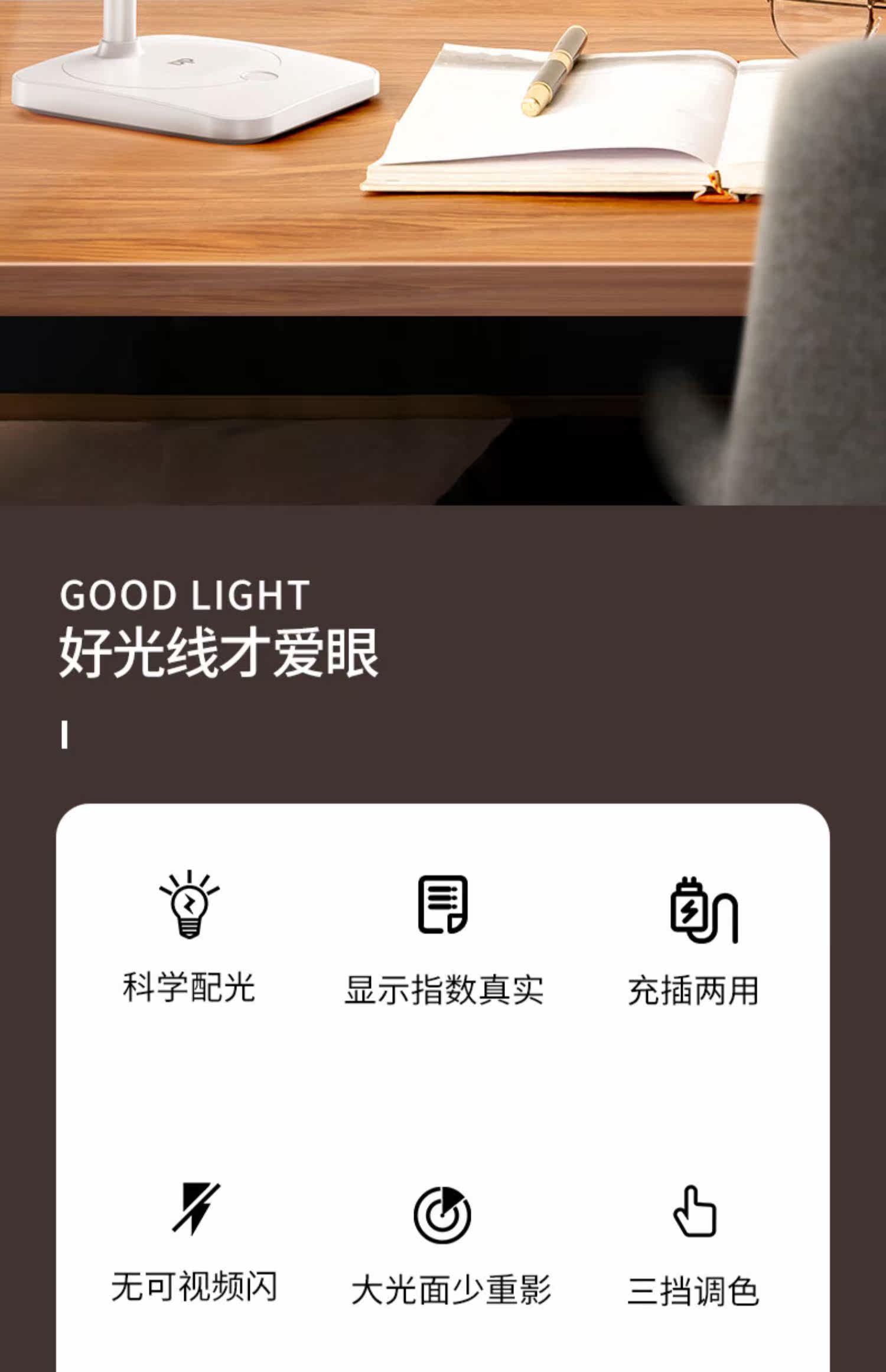 久量大牌,谢娜代言,40颗LED灯珠,触控无极调光,无频闪减蓝光,灯光柔和不伤眼,三年质量保证,学习办公宿舍居家必备【赠运费险】