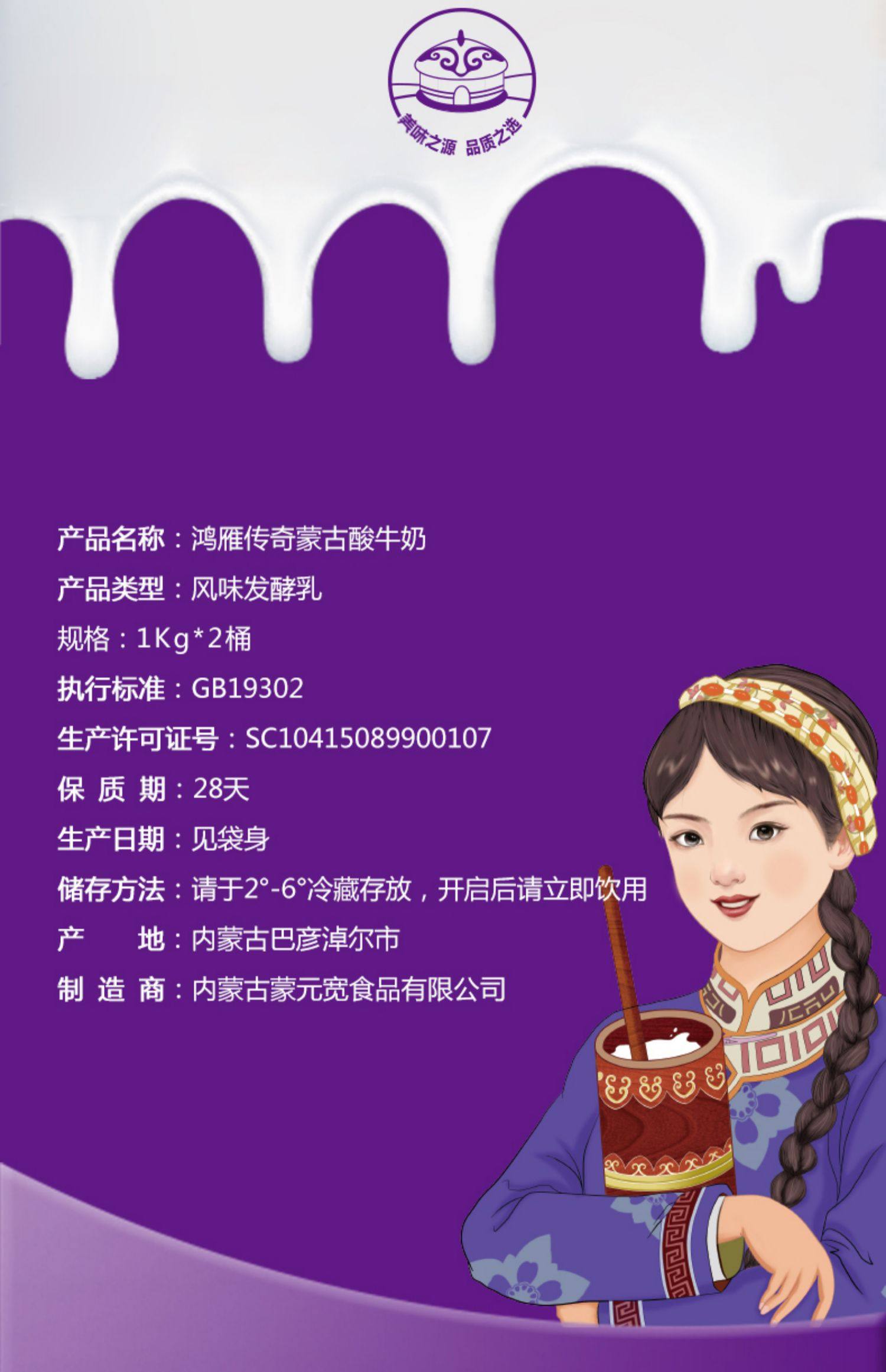 家庭装浓缩蒙古酸牛奶1kg*2桶