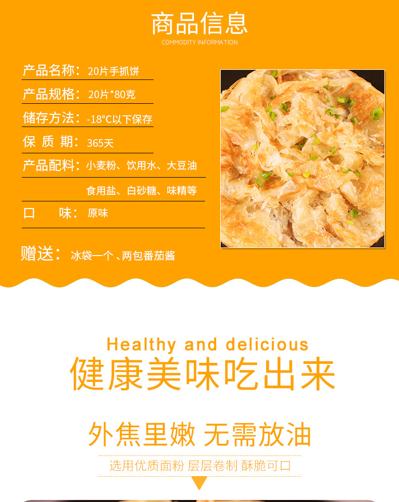 【多仓发货,极速到家,送冰袋+纸袋】采用高品质小麦粉,揉入鲜美香葱,反复压延,成就好手抓饼!色泽金黄,外焦里嫩,酥脆可口,无需用油,只许3分钟轻松搞定美味~【赠运费险】