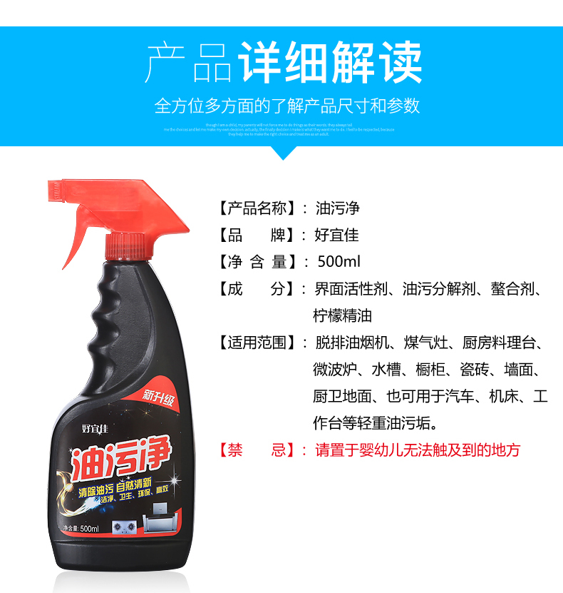 还在为油烟烦恼吗?顽固污渍洗不净?一喷一擦,强效去渍,油污统统不见,一瓶顶半年!错过就跪搓衣板吧【赠运费险】【七天无理由退换】