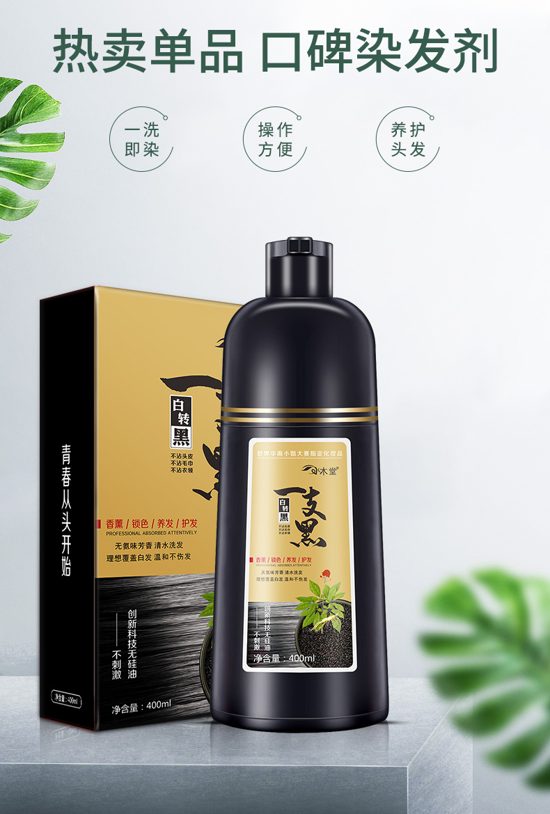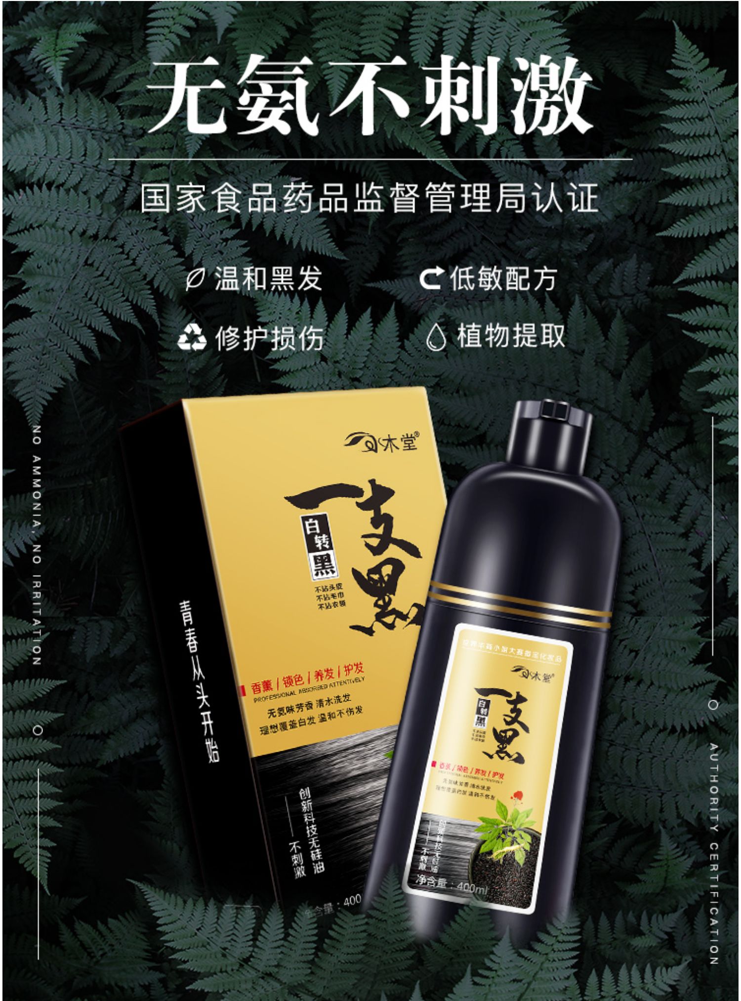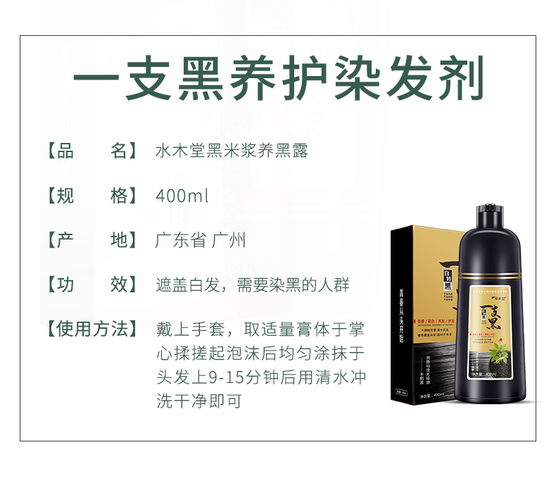 正常发货【水木堂】专门做高端染发,植物精华提取自然原料!无需调兑,一洗即黑,迷人果香味温和配方,自然黑发不黑头皮,温和不刺激~【买就送染发工具套装】