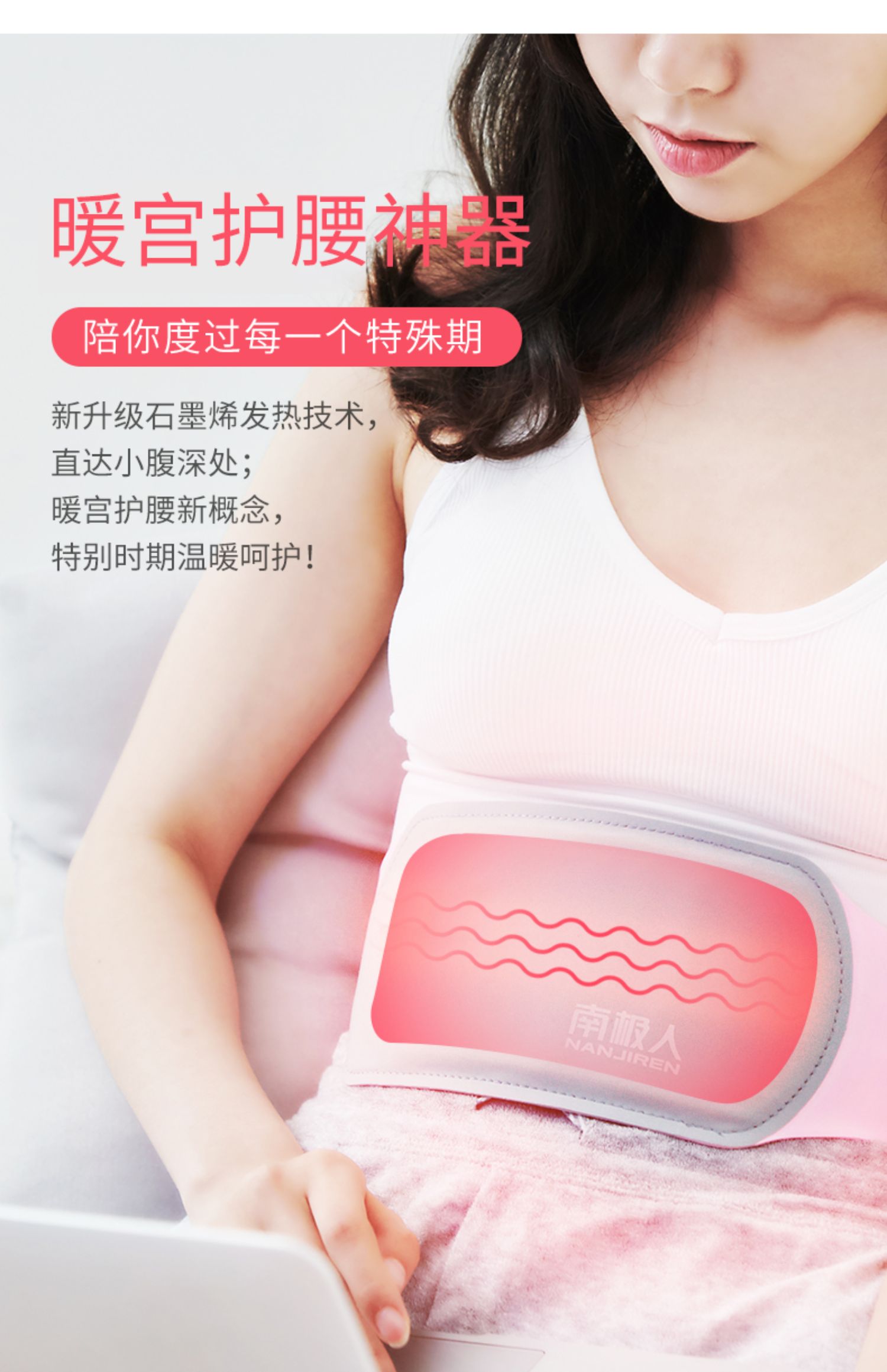【大牌南极人,震动按摩,石墨烯发热】告别姨妈痛神器!移动供热,3秒速热,恒温热敷暖宫,驱走宫寒疼痛!可调节松紧,工作,开车等随时可用!还是可水洗重复用的,超实用!【一年质保】