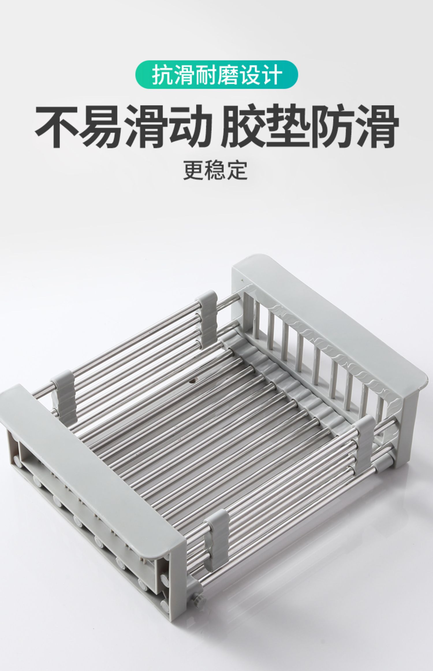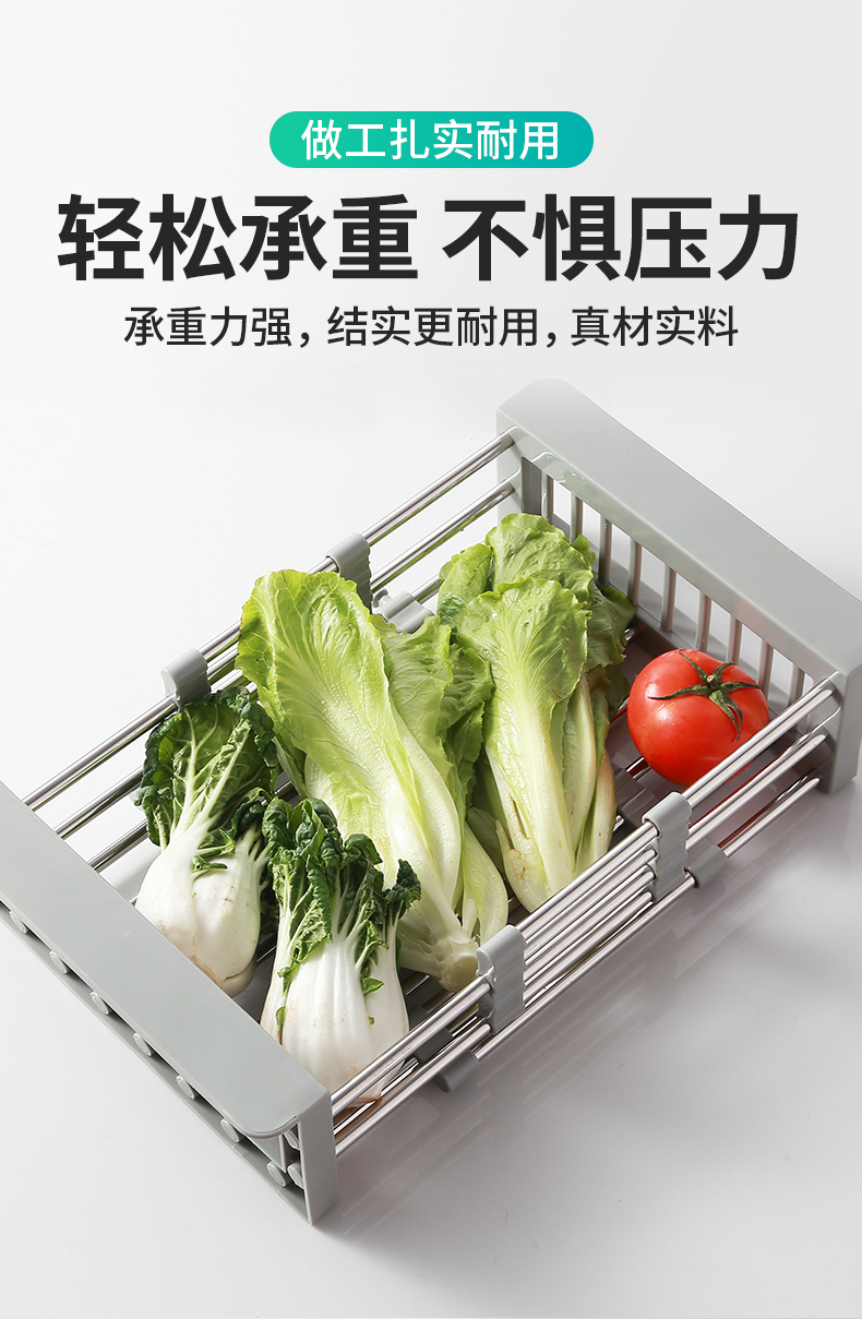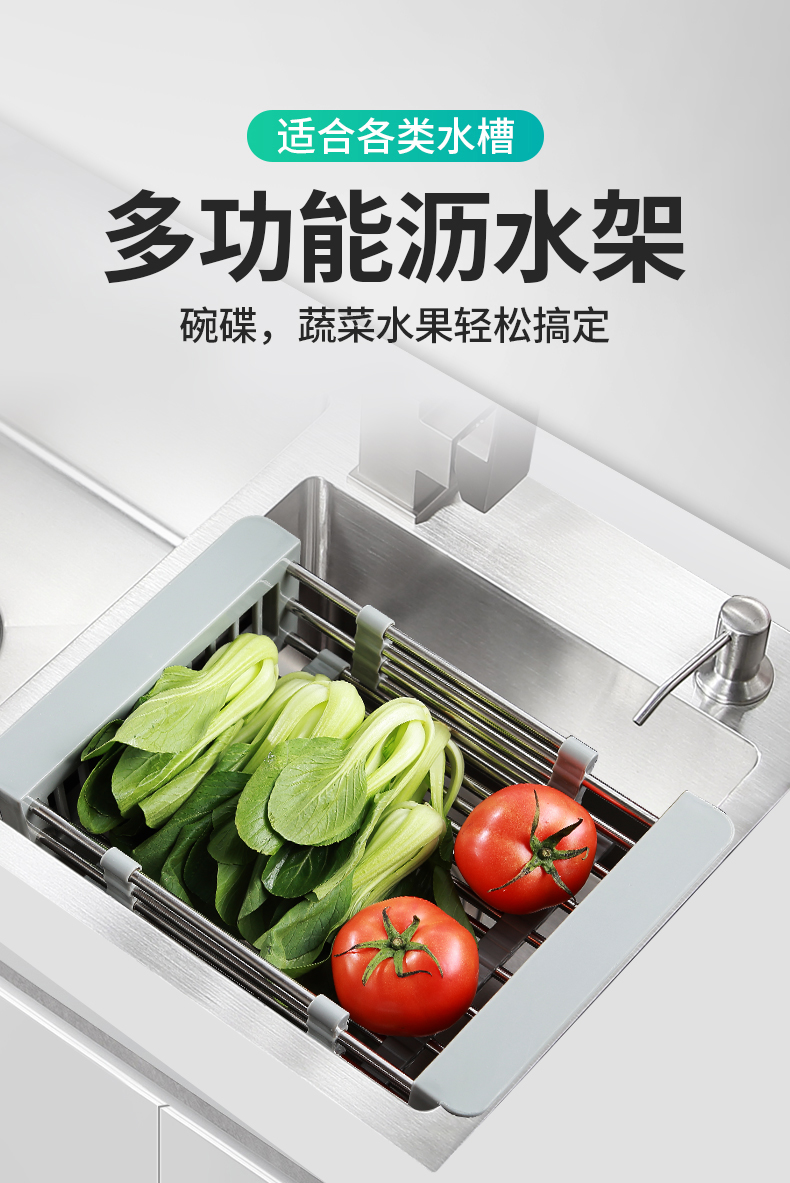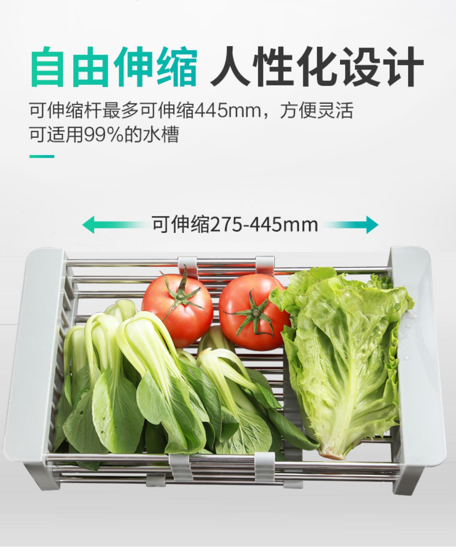 用过就爱上它,可伸缩,不锈钢,厨房果蔬沥水,免打孔,居家必备!家庭神器你值得拥有!【赠运费险】