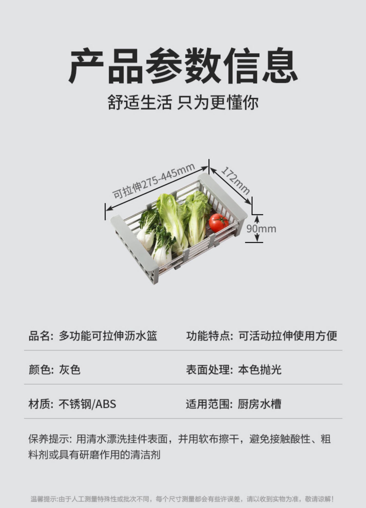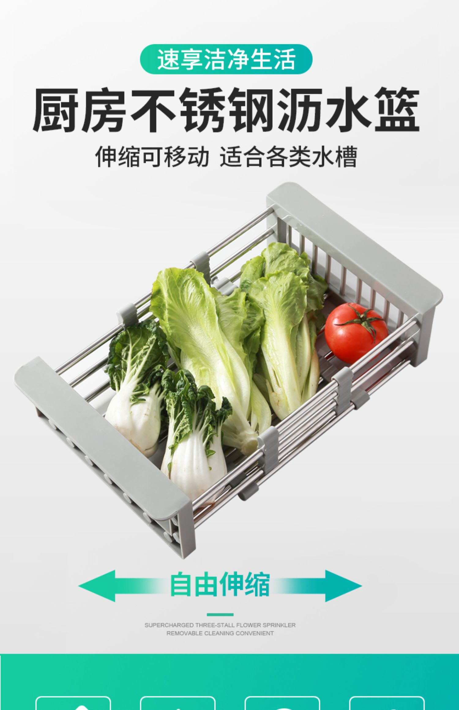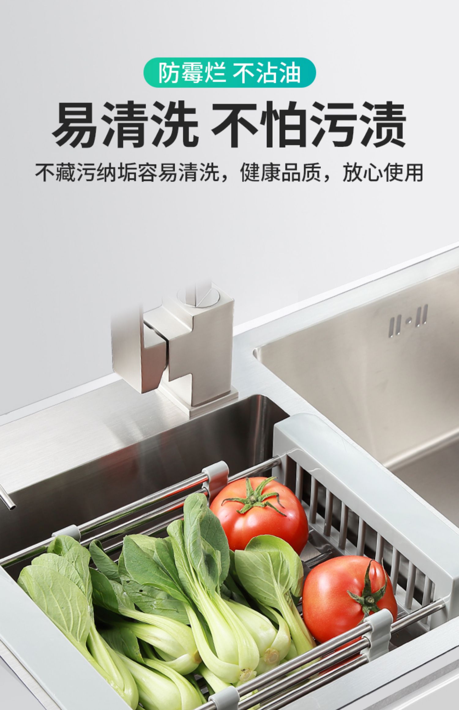 用过就爱上它,可伸缩,不锈钢,厨房果蔬沥水,免打孔,居家必备!家庭神器你值得拥有!【赠运费险】