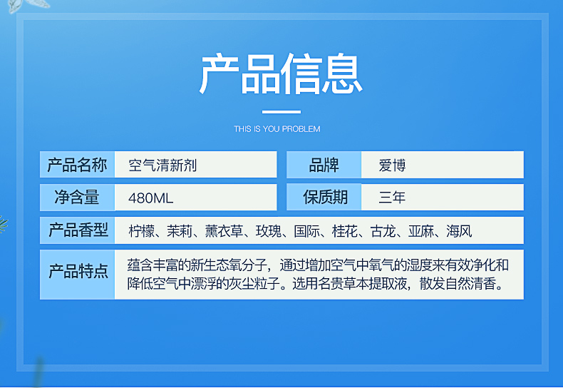 拍2瓶发3瓶,480ml大容量哦,爱博大牌天猫旗舰店,热销2W+,放心购,持久留香,安全无刺激;有效去除异味,净化除菌,多种香型选择,采用天然植物天然净化,家庭办公车载必备!