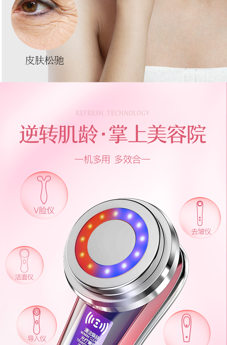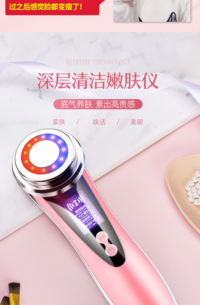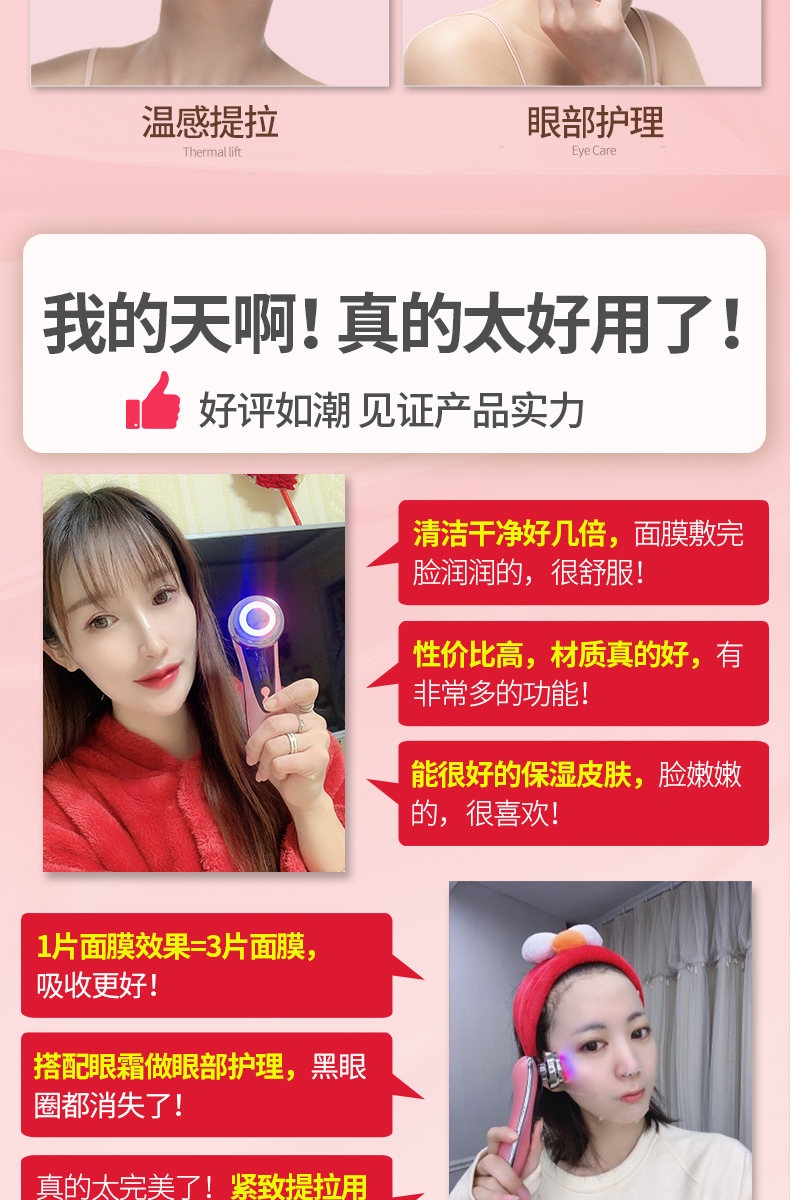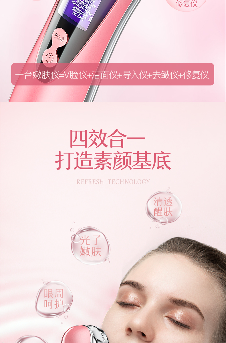 【李佳琦推荐】光子嫩肤美容仪!导出导入精华修补肌肤,深层清洁毛孔污垢,红蓝双光嫩肤+眼部护理+提拉紧致+洁面,一机多用!温感提拉祛除细纹,打造V脸,让肌肤重回18岁嫩白肌!