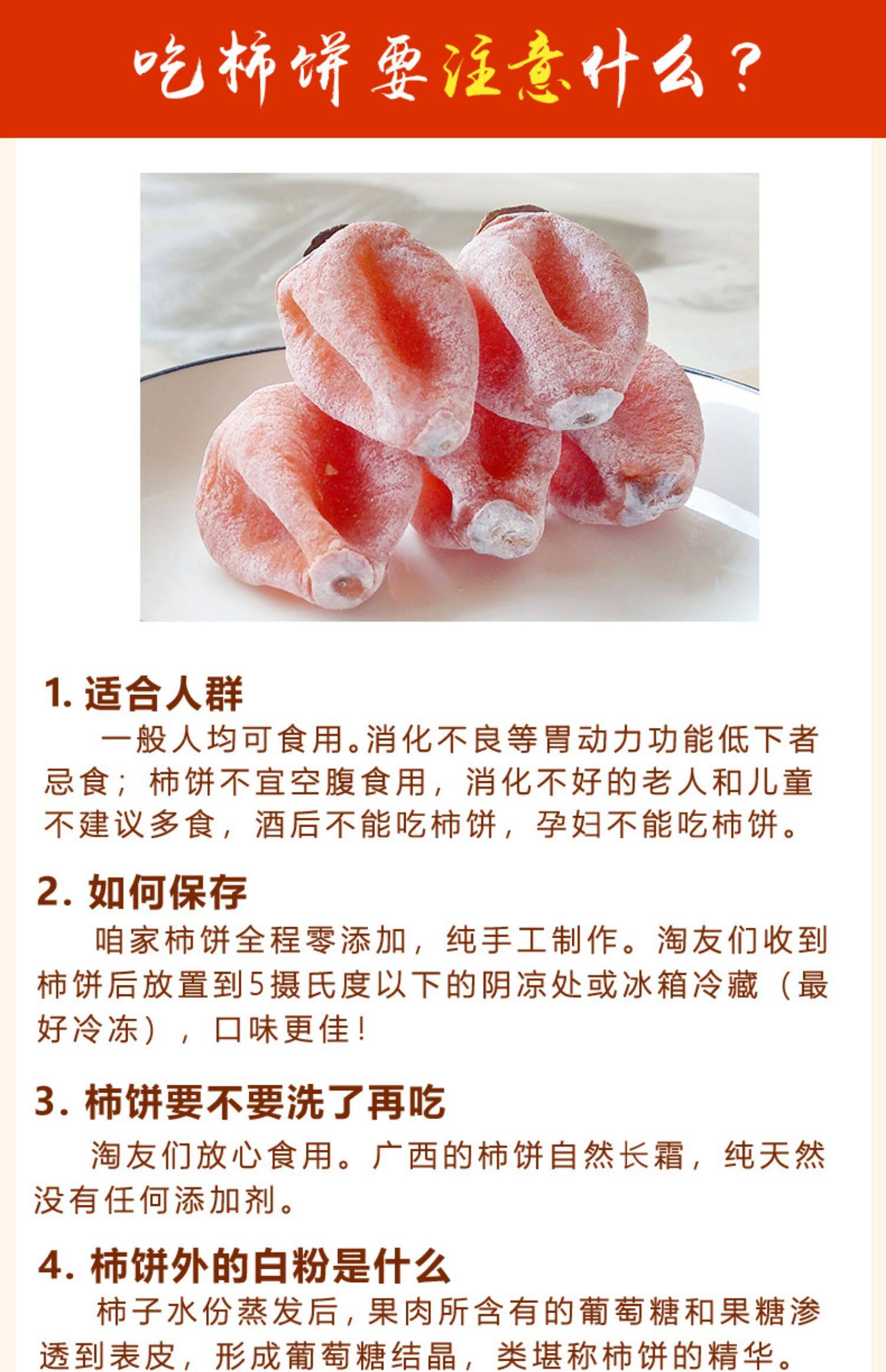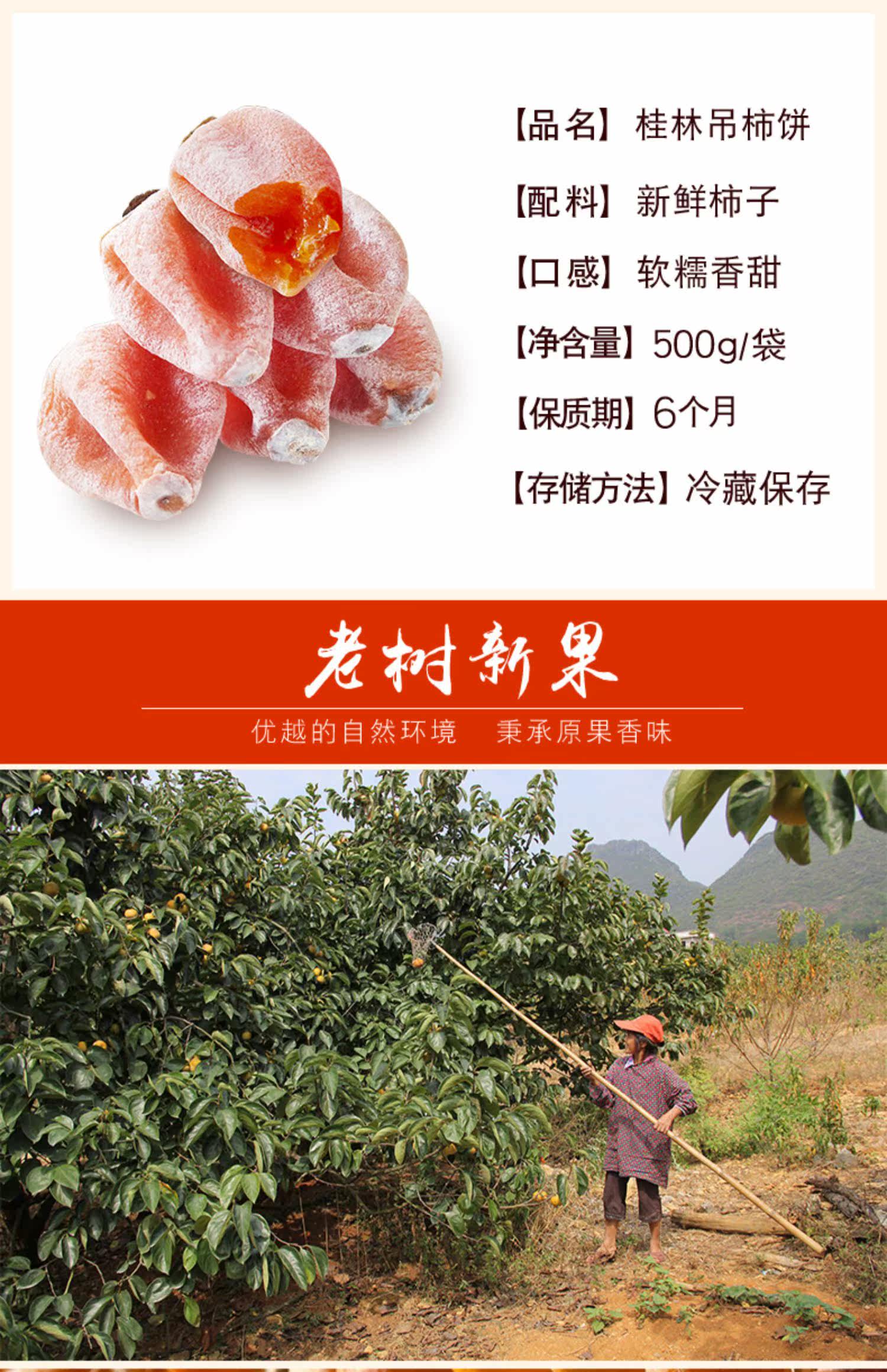 【拍2件!一斤才12.38元】广西恭城特产吊柿,柿饼爆浆的口感,看着口水直流!香甜软糯柿饼,肉质致密,纤维少汁液多,农家传统手工12道工序霜降精制,味道甜美,营养丰富。坏果包赔【赠运费险】