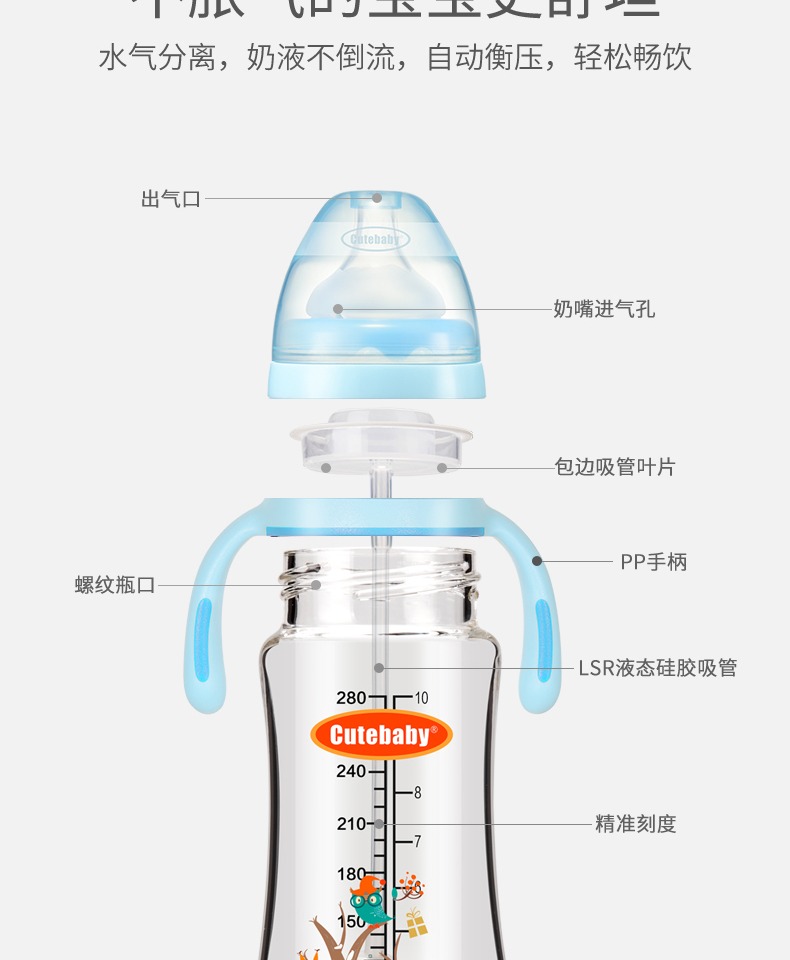 育儿必备,安全性防爆晶钻玻璃,加强加厚,耐高温,防胀气,不含双酚a,防防摔,安全健康