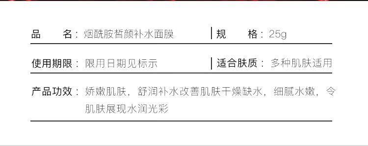 【专柜正品!超值25片】婵茜正品烟酰胺皙颜面膜,屈臣氏有售158一盒!烟酰胺成份,有效补水保湿,持久锁水,改善肌肤黯沉,保持年轻肌肤的秘密~【赠运费险】