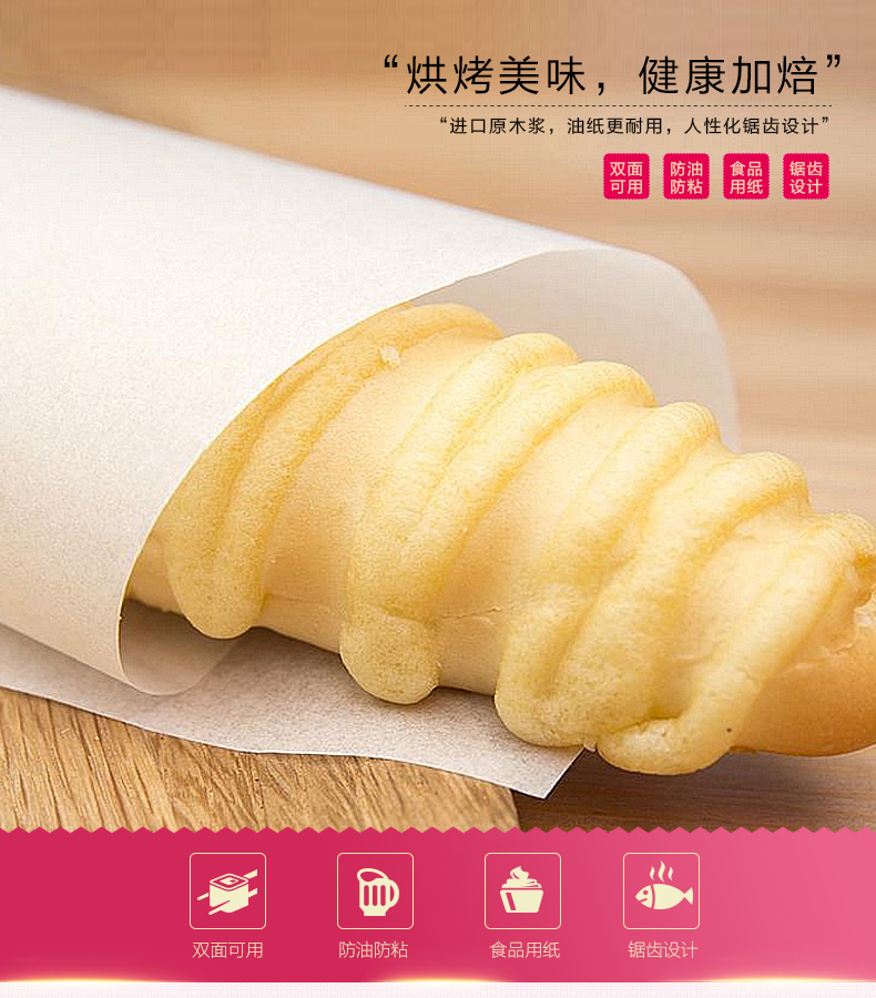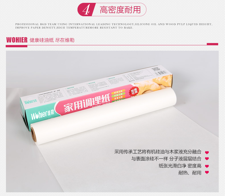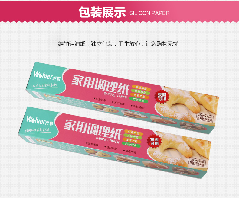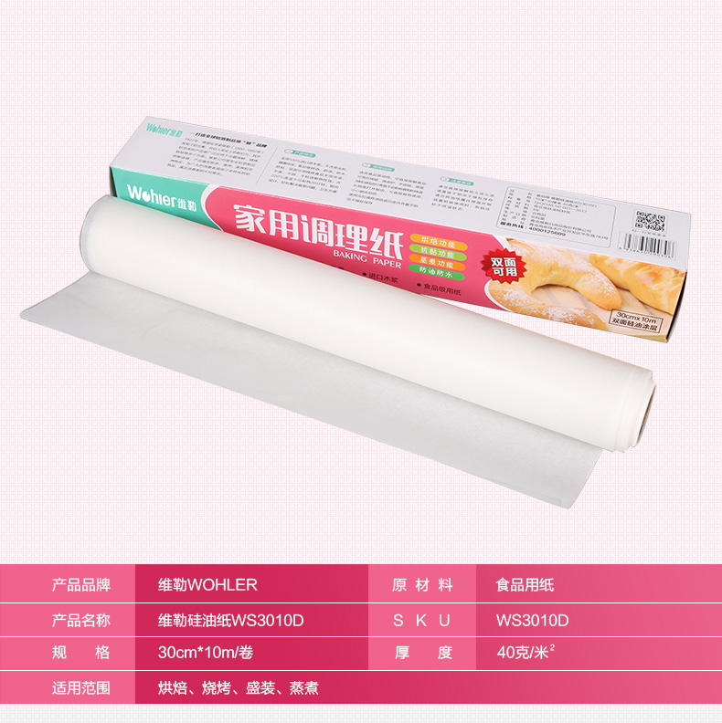 【10米*4卷】食品级烘焙调理用纸,采用进口原木浆,油纸更耐用,人性化锯齿设计,双面可用,防油防粘,烘焙,烧烤,蒸煮,盛装等多方面都适用,烧烤美味,健康加焙,健康硅油纸,尽在维勒!【赠运费险】