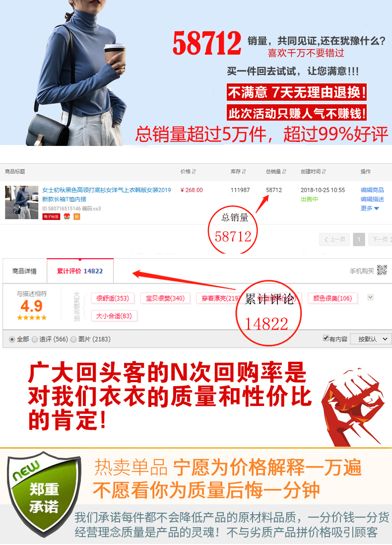 【多色可选】采用纯棉材质高领保暖打底衫!先拍了在说,一会没了!细腻有质感,不起球不掉色,柔软亲肤,保暖舒适,高领设计,优雅大气,超有气质,低于风寒,秋冬常备,手慢无【赠运费险】