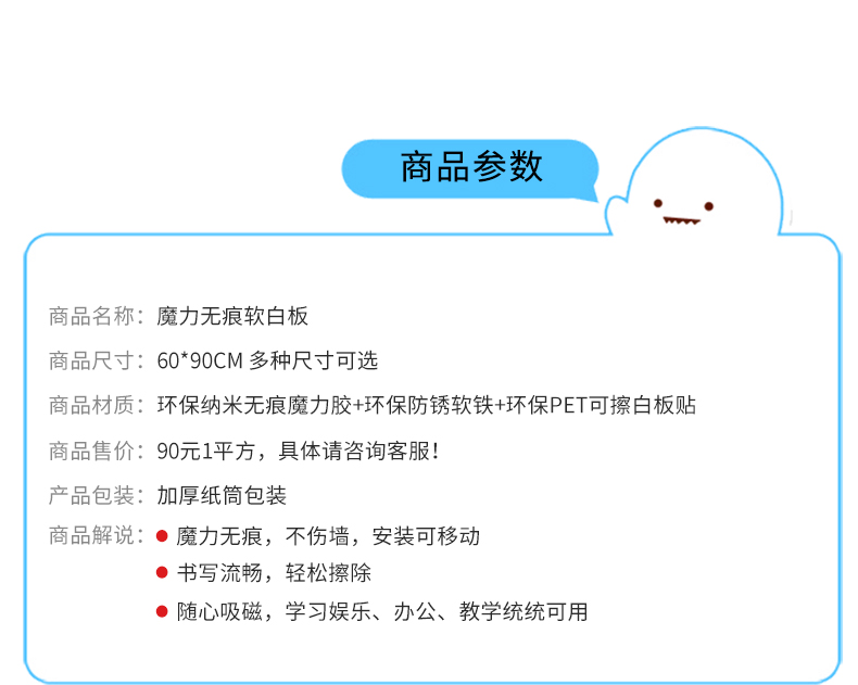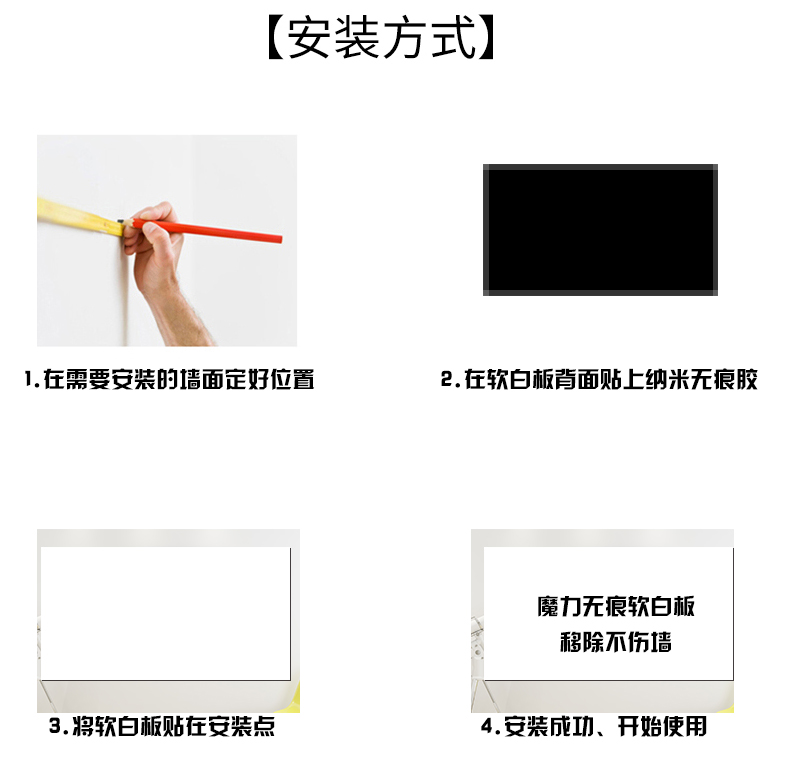 纳米无痕铁质软白板,不伤墙,可轻松擦除,表面防水,光滑明亮,安装牢固,不占空间,吸磁能力强,非常实用~【赠运费险】
