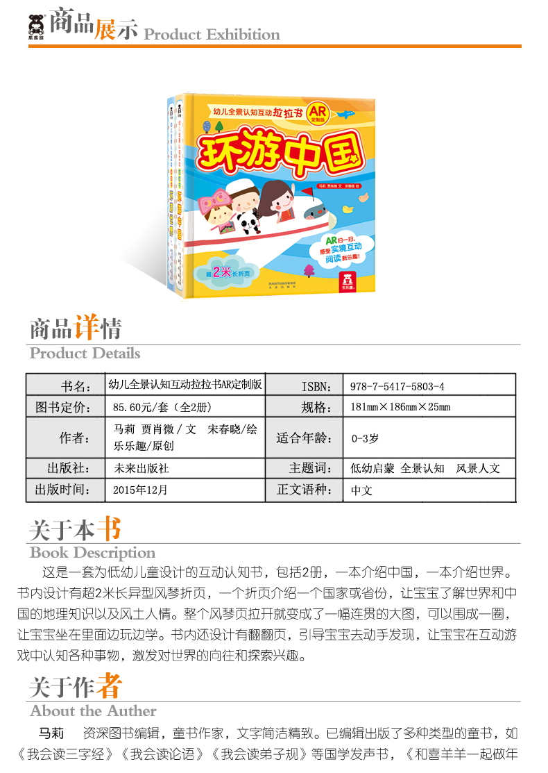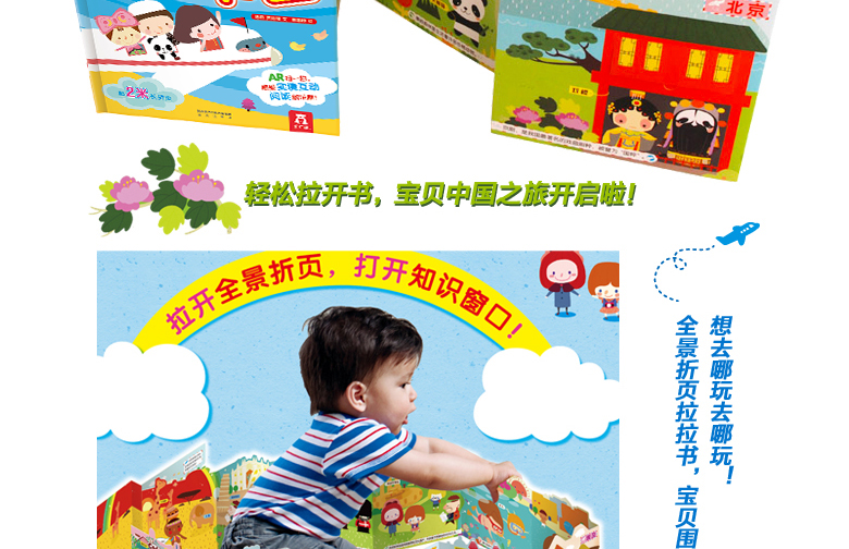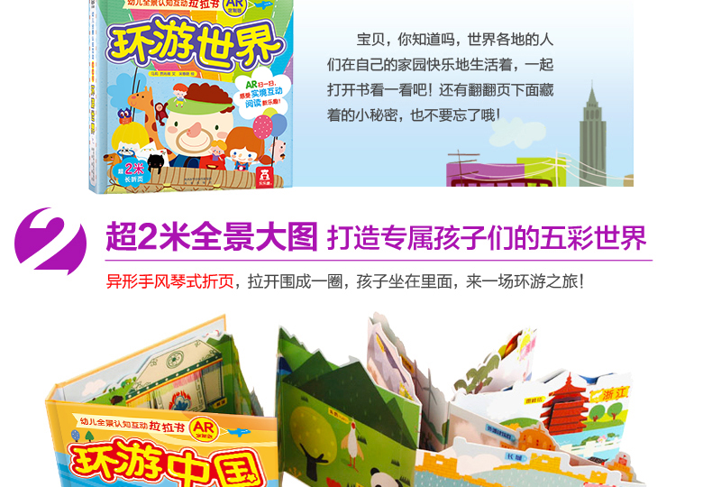 【乐乐趣童书】幼儿全景AR互动启蒙认知,拉开全景折页,带孩子环游世界,环游中国,去探索事物。【赠运费险】