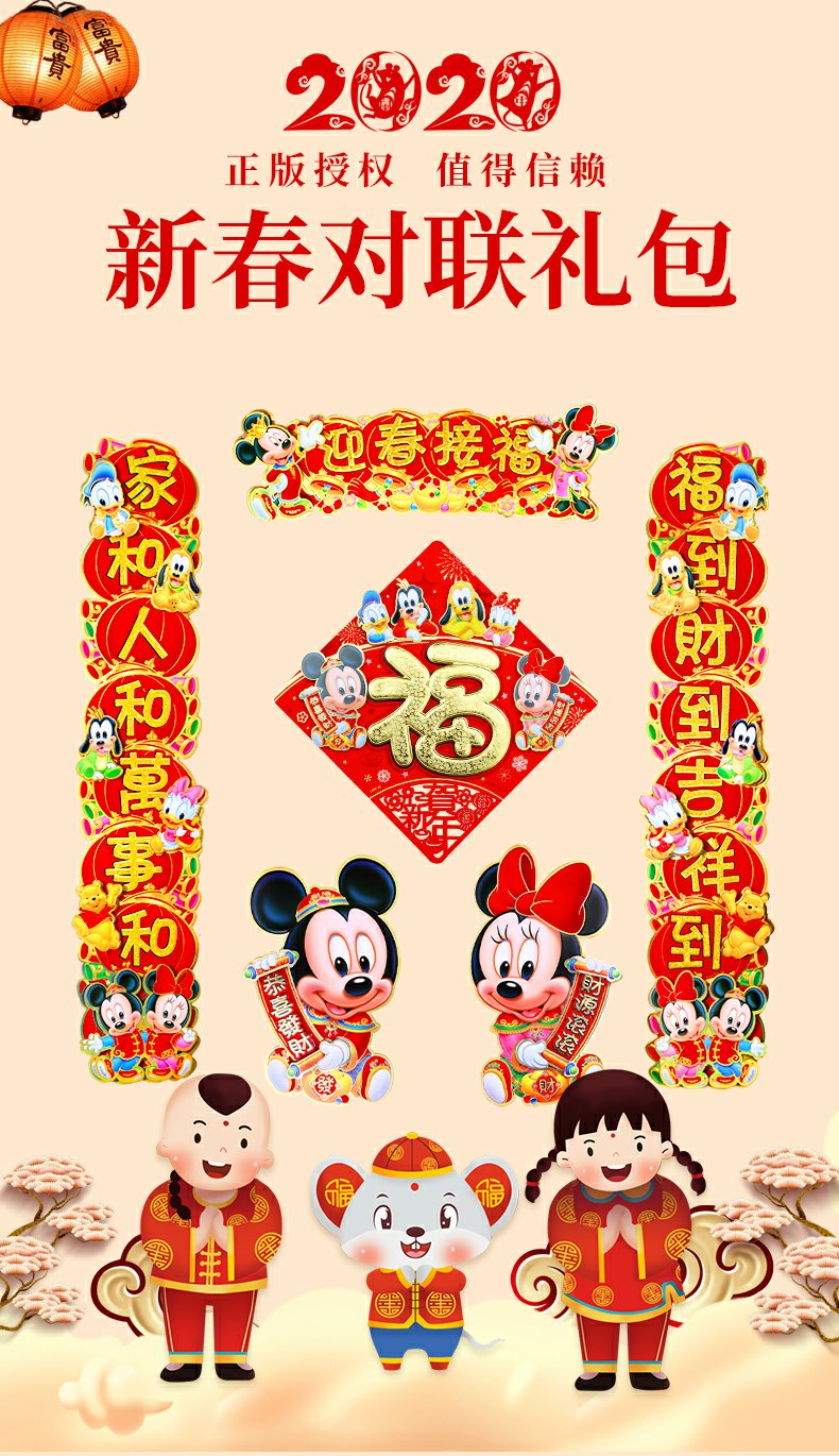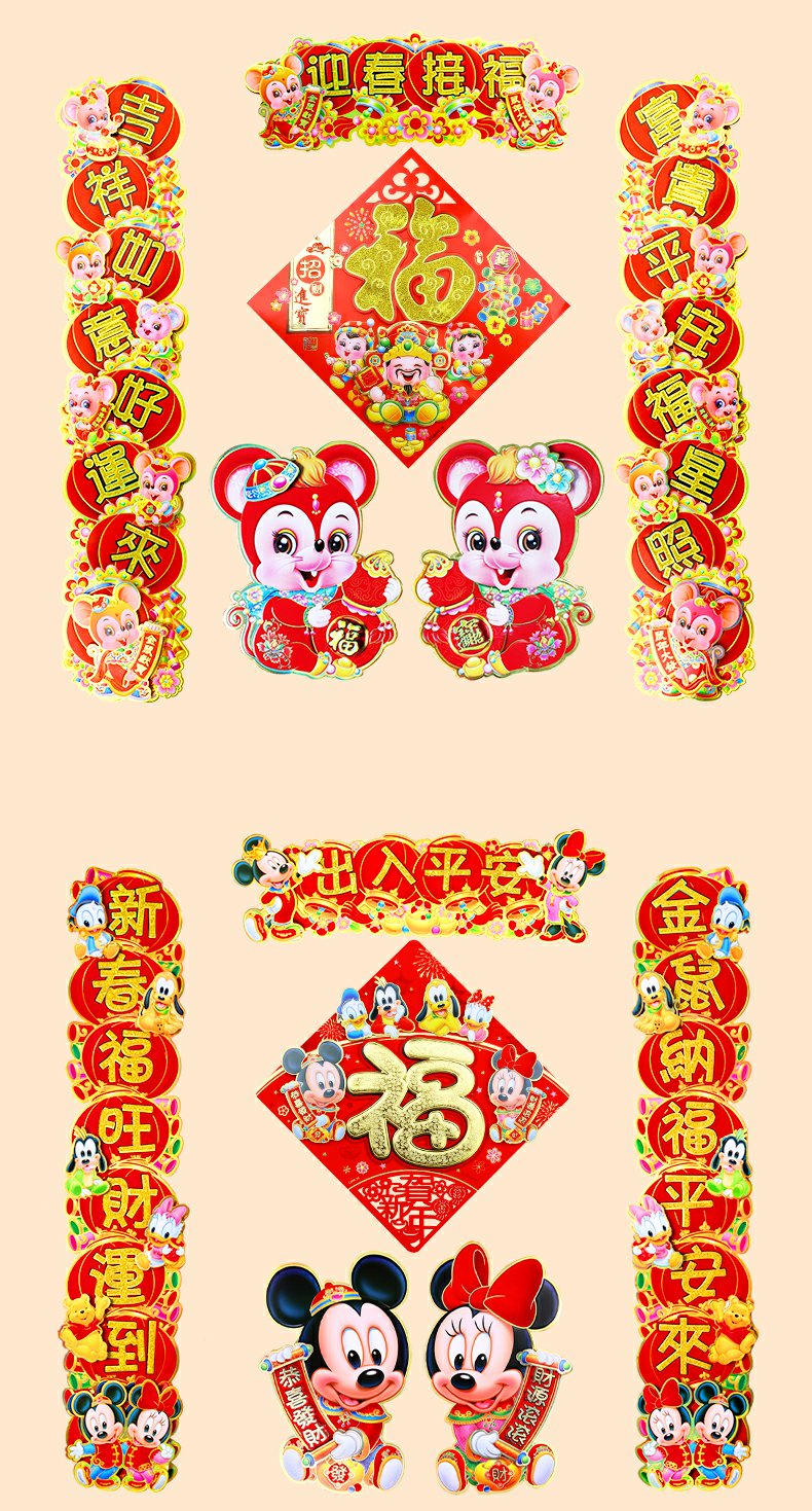 【春节对联套装】吉祥对联,喜庆福字贴,可爱鼠年生肖贴,喜庆美观,高端大气,多种款式,让你一年喜气洋洋!红红火火!