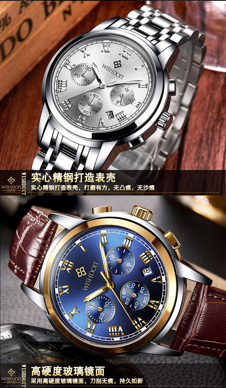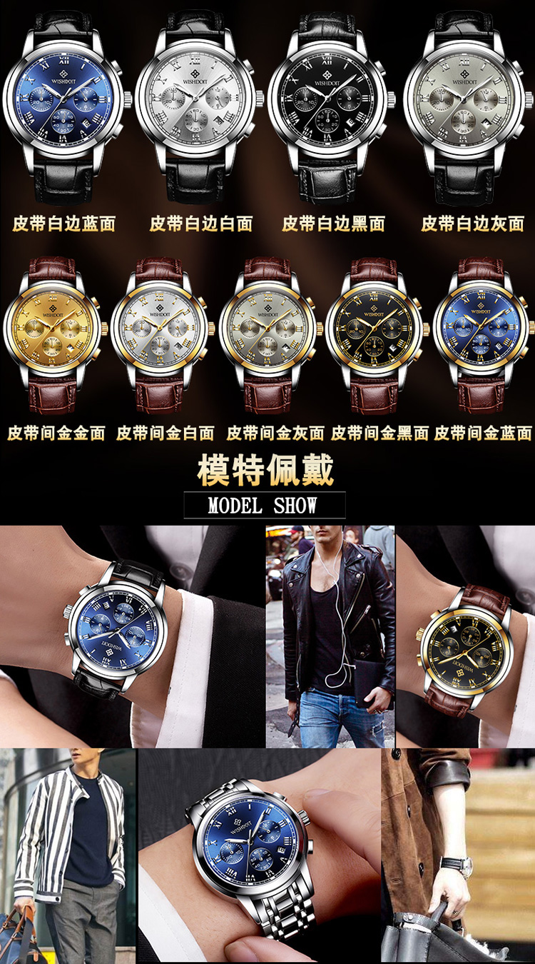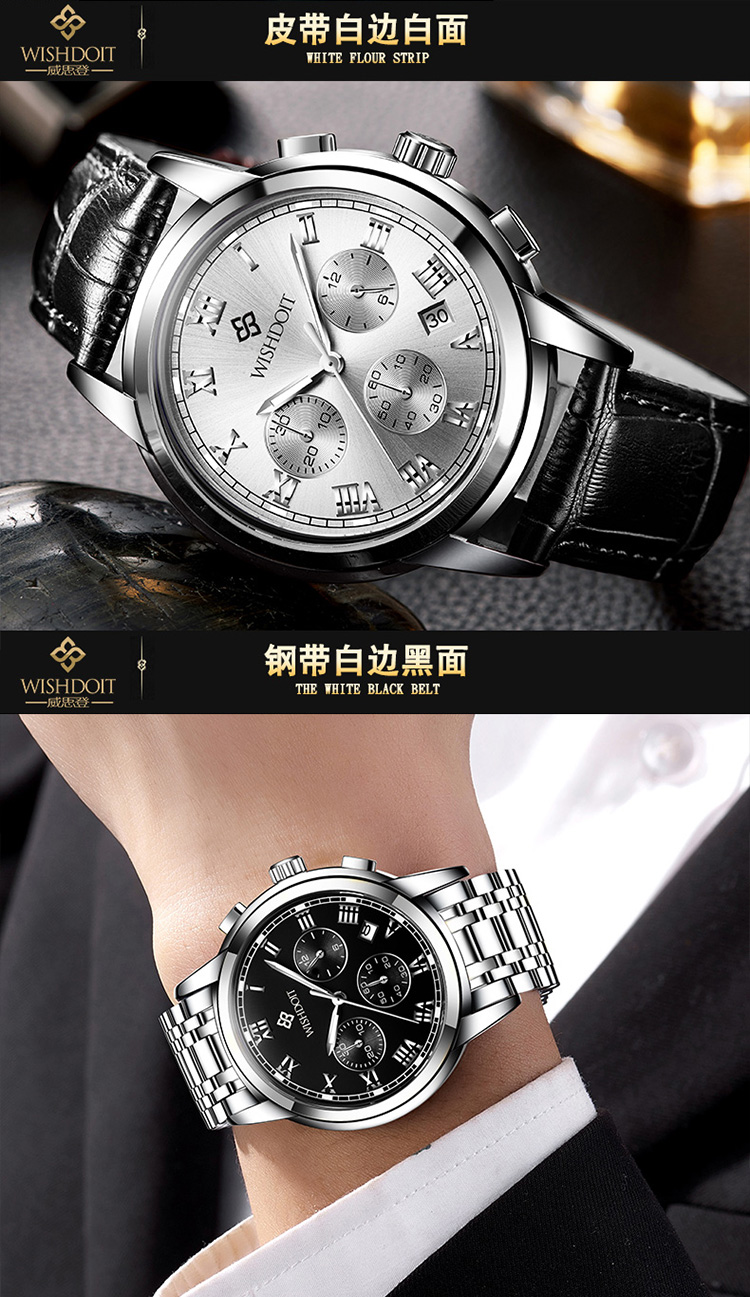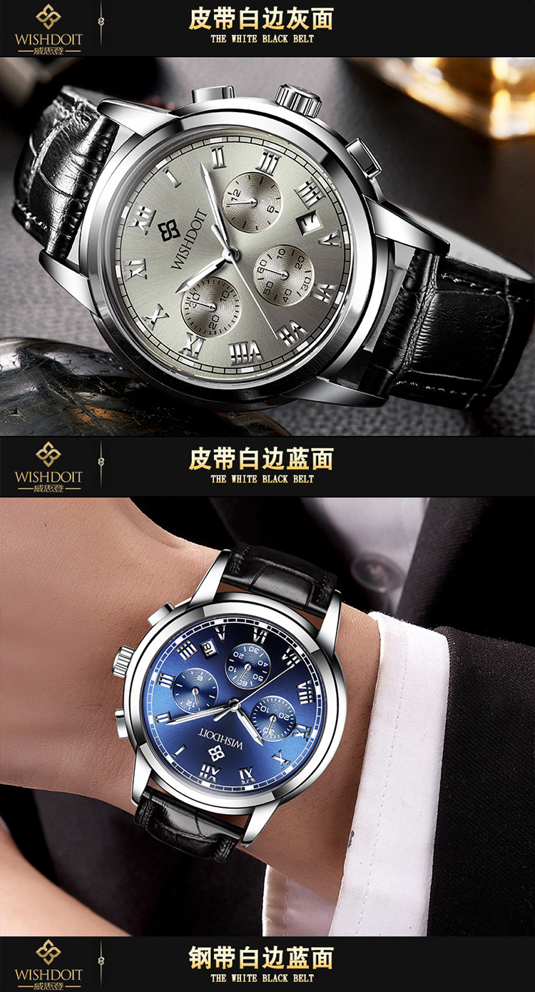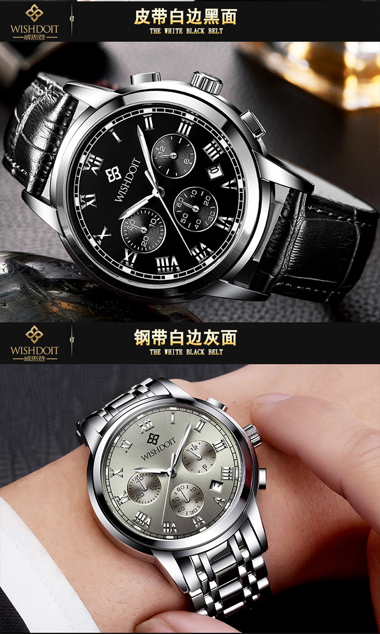 【十年威思登旗舰店】【下单即送原装表带】圆滑表亮,精钢打造,硬朗大气,光滑表观,柔美利落,时尚潮流,加强防水,带日历,还夜光哦!2年保修精钢皮带同样价格【赠运费险】