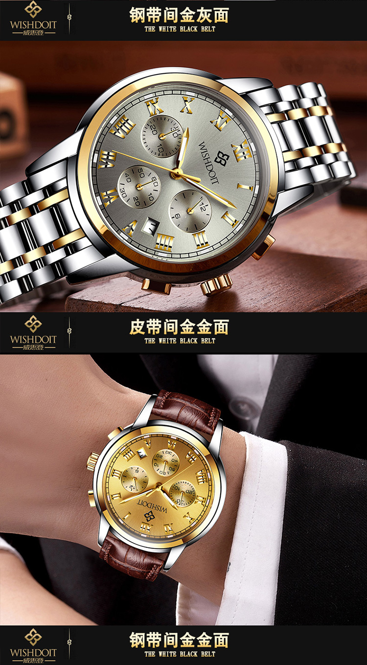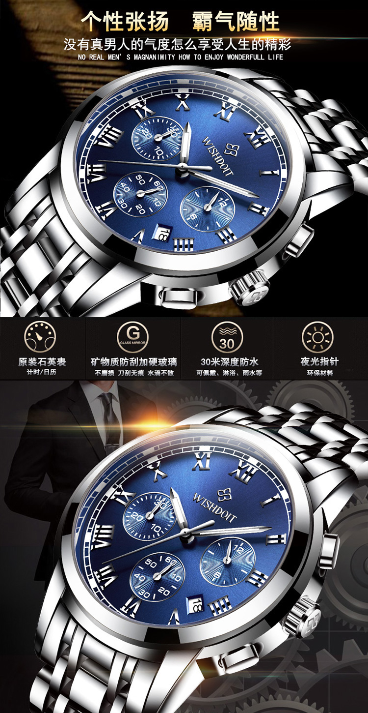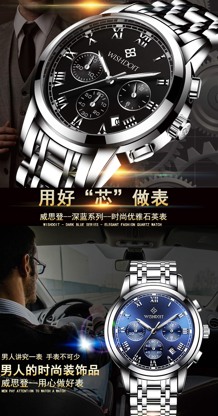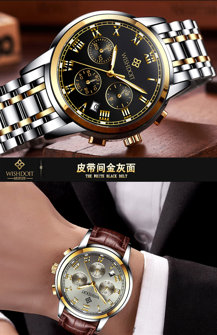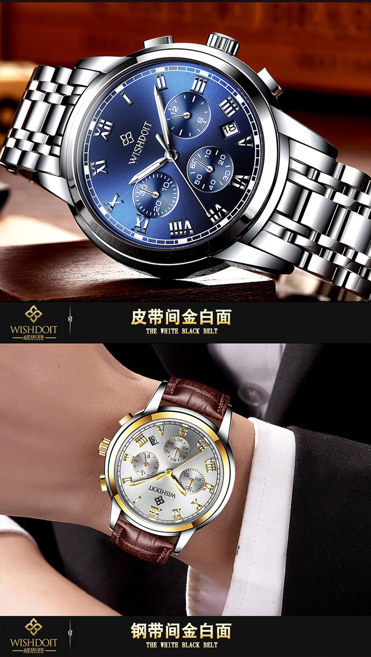 【十年威思登旗舰店】【下单即送原装表带】圆滑表亮,精钢打造,硬朗大气,光滑表观,柔美利落,时尚潮流,加强防水,带日历,还夜光哦!2年保修精钢皮带同样价格【赠运费险】