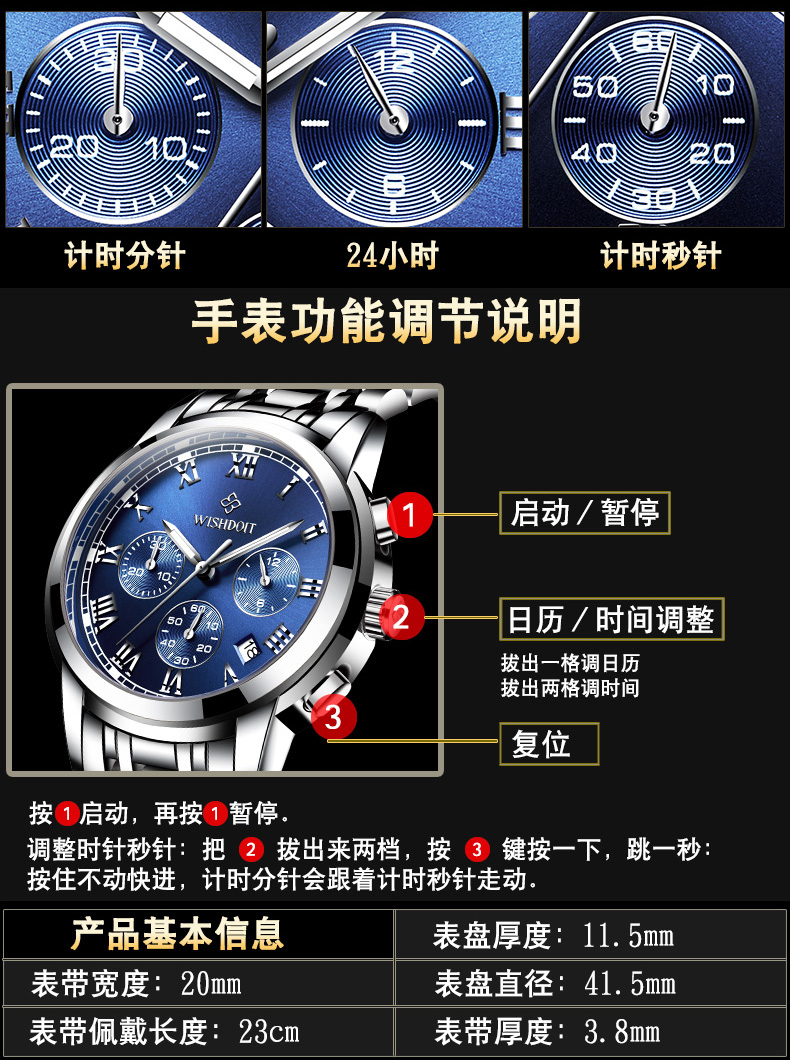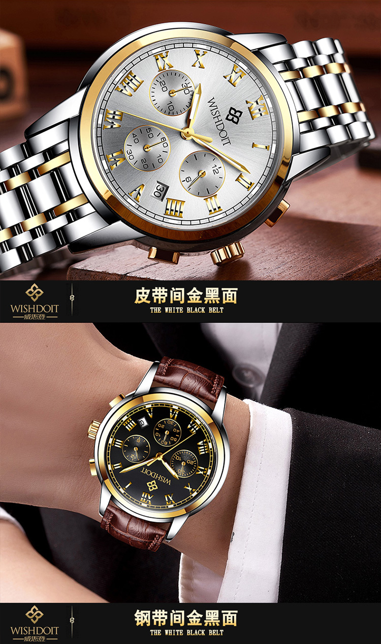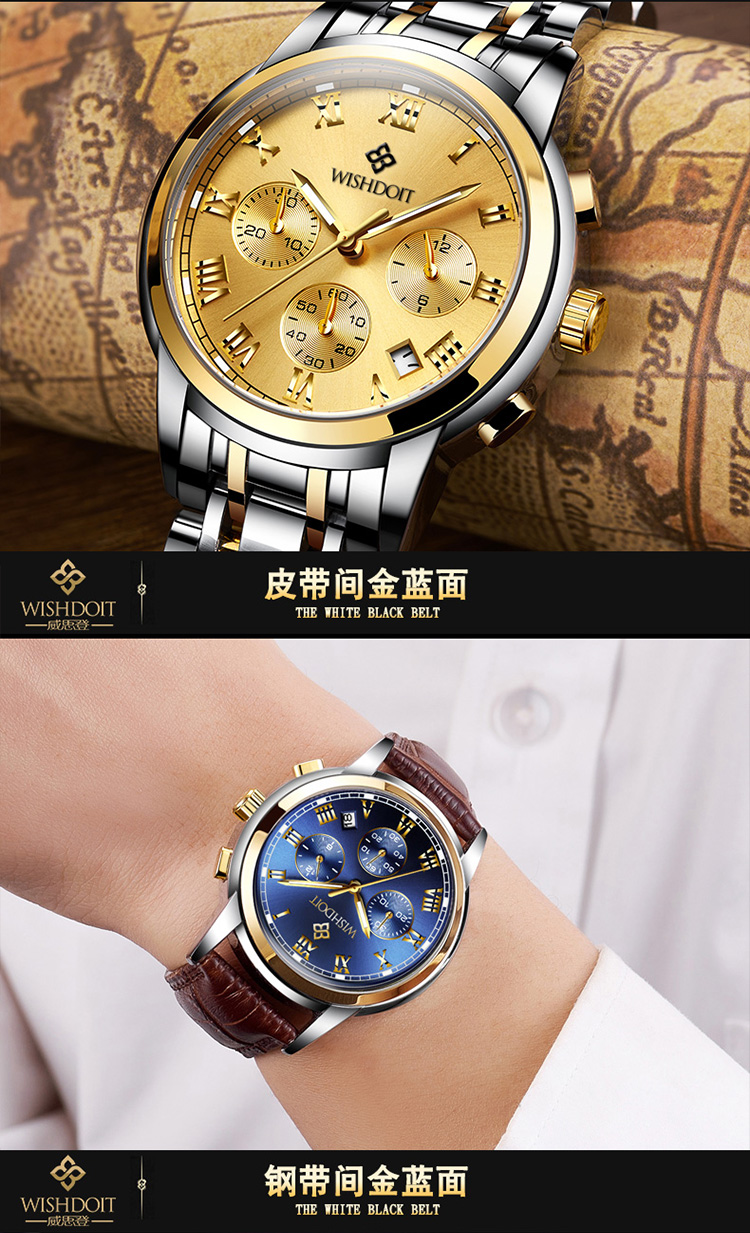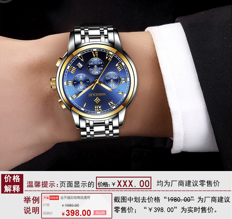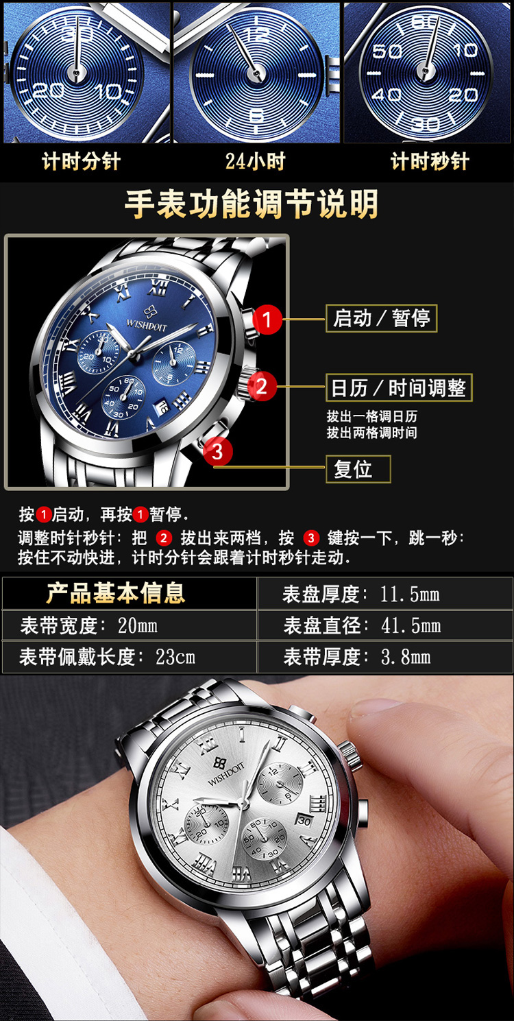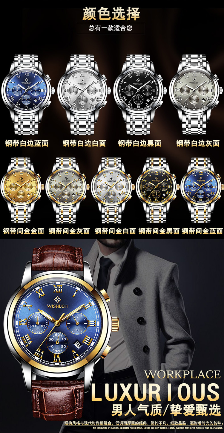 【十年威思登旗舰店】【下单即送原装表带】圆滑表亮,精钢打造,硬朗大气,光滑表观,柔美利落,时尚潮流,加强防水,带日历,还夜光哦!2年保修精钢皮带同样价格【赠运费险】