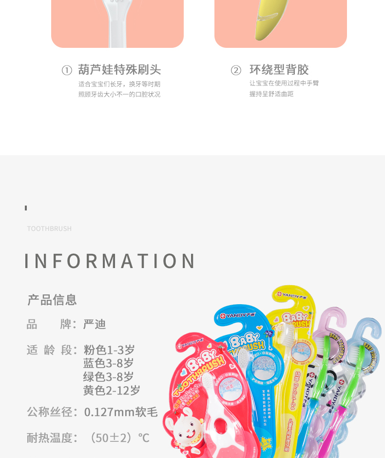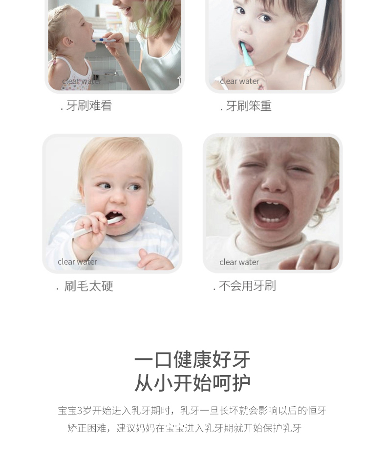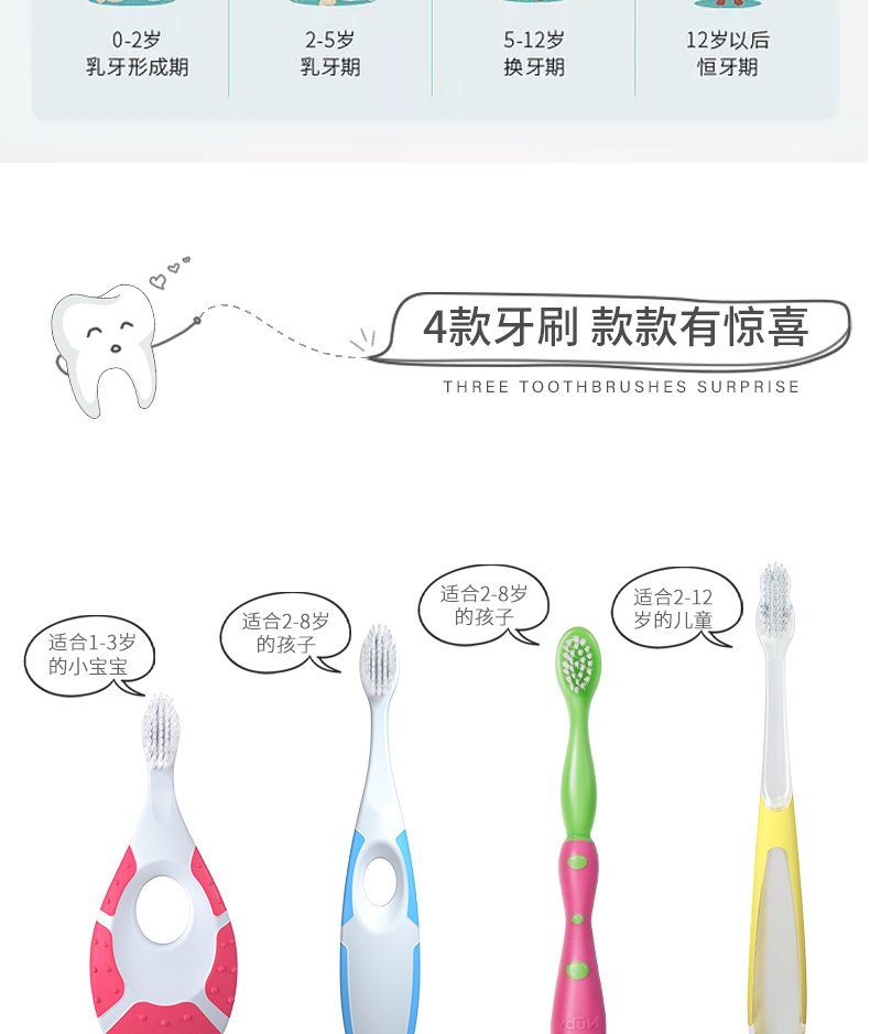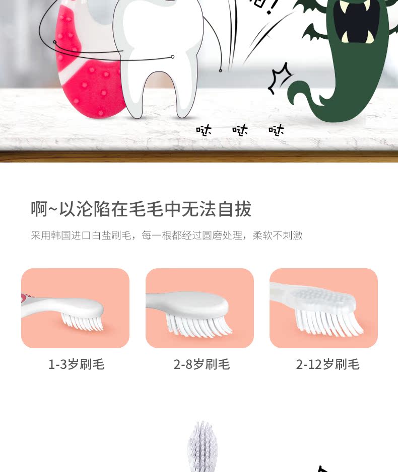推荐理由:【韩国进口0.12mm刷毛】TPR材质,入口安全,柔软度成人牙刷的4倍,关爱宝宝稚嫩牙龈,符合儿童人体工程学手柄,弹性握感【赠运费险】