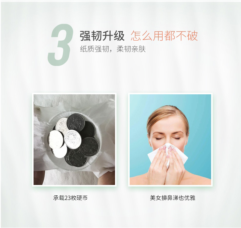 【思景旗舰店】科学实验不添加,物理配比实现纸张自然强韧,柔韧亲肤,擦拭无屑,湿水不易破,湿水平均可承载23枚硬币,20年环保制浆经验,呵护您和您的家人。