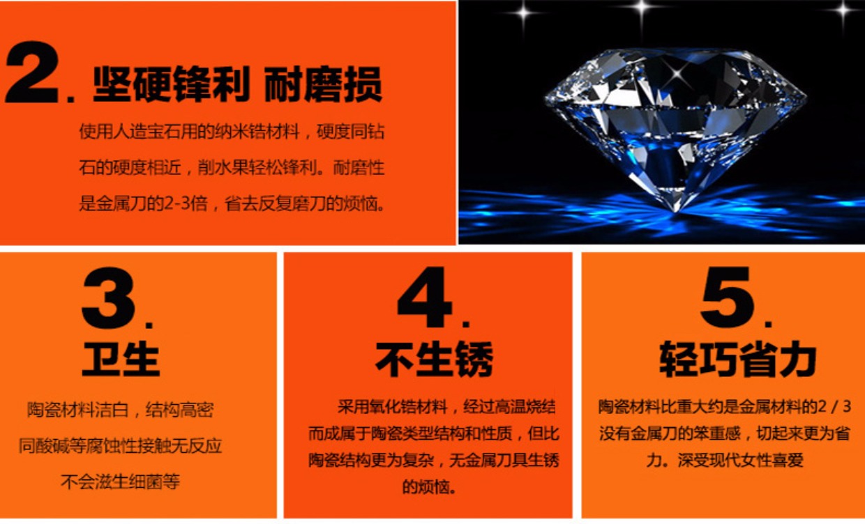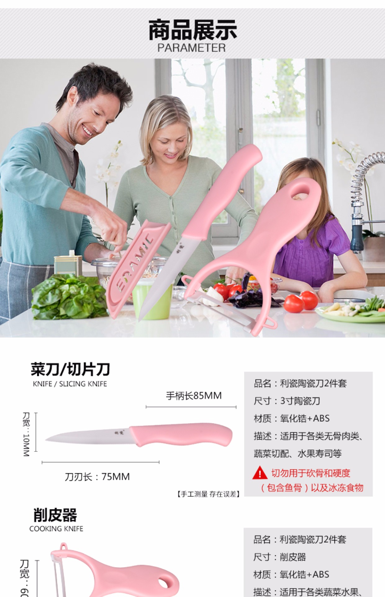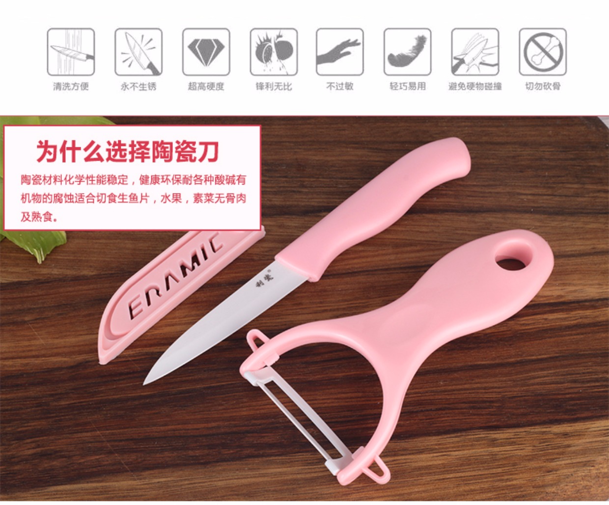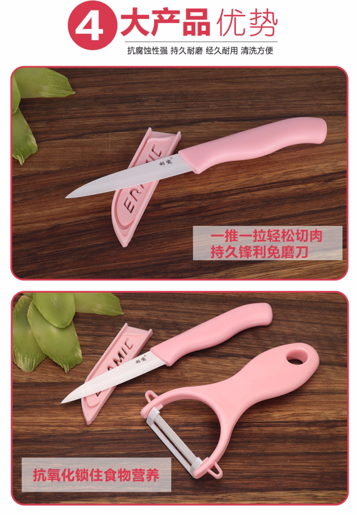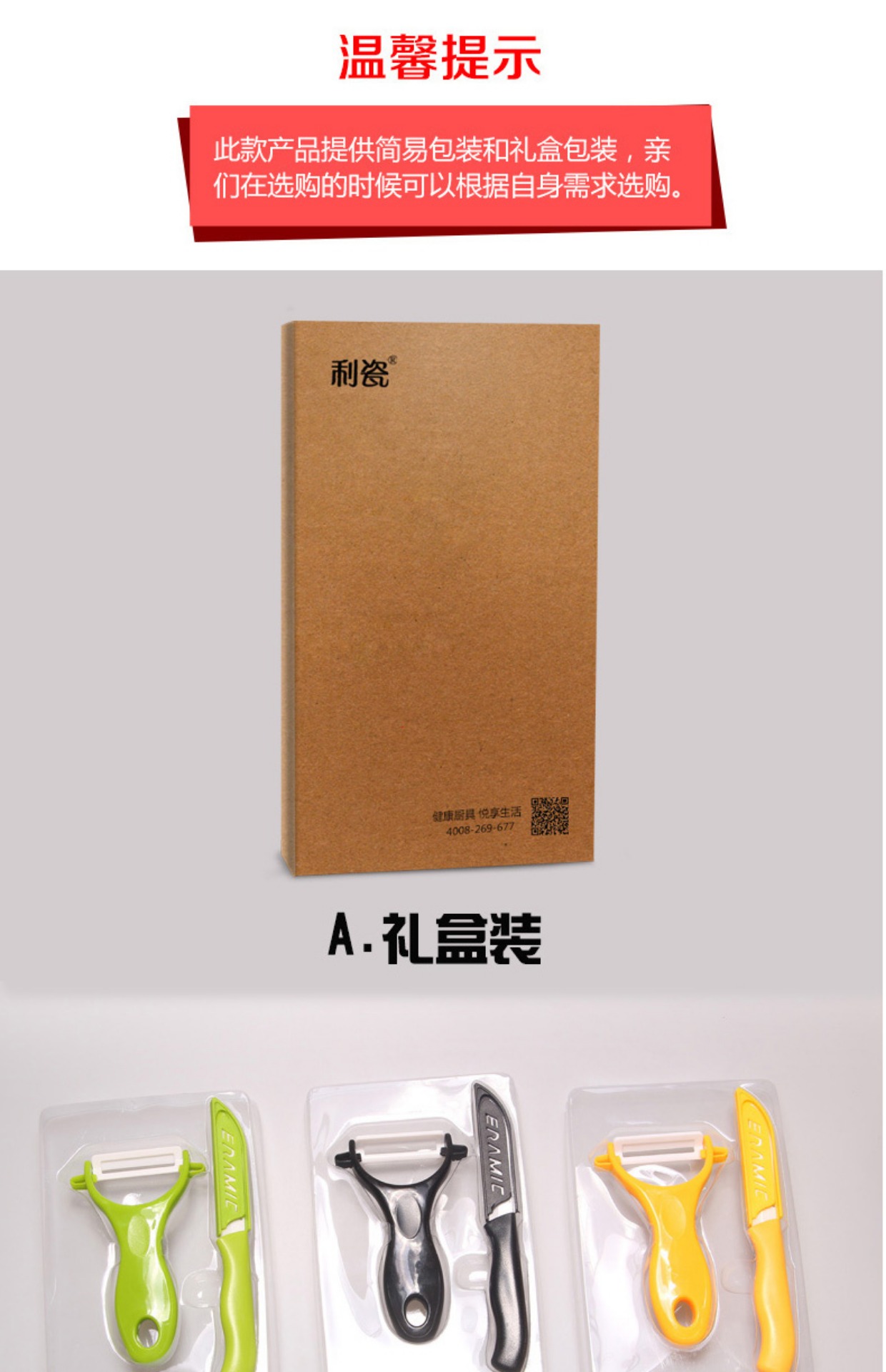 利瓷陶瓷刀套装,刨头升级削皮更薄,水果刀锋利耐用,无需研磨,不易氧化;削皮刨带挖孔,轻松削皮去芽眼;菜板防滑耐磨,边缘凹槽设计易排水;也可用于制作儿童辅食。