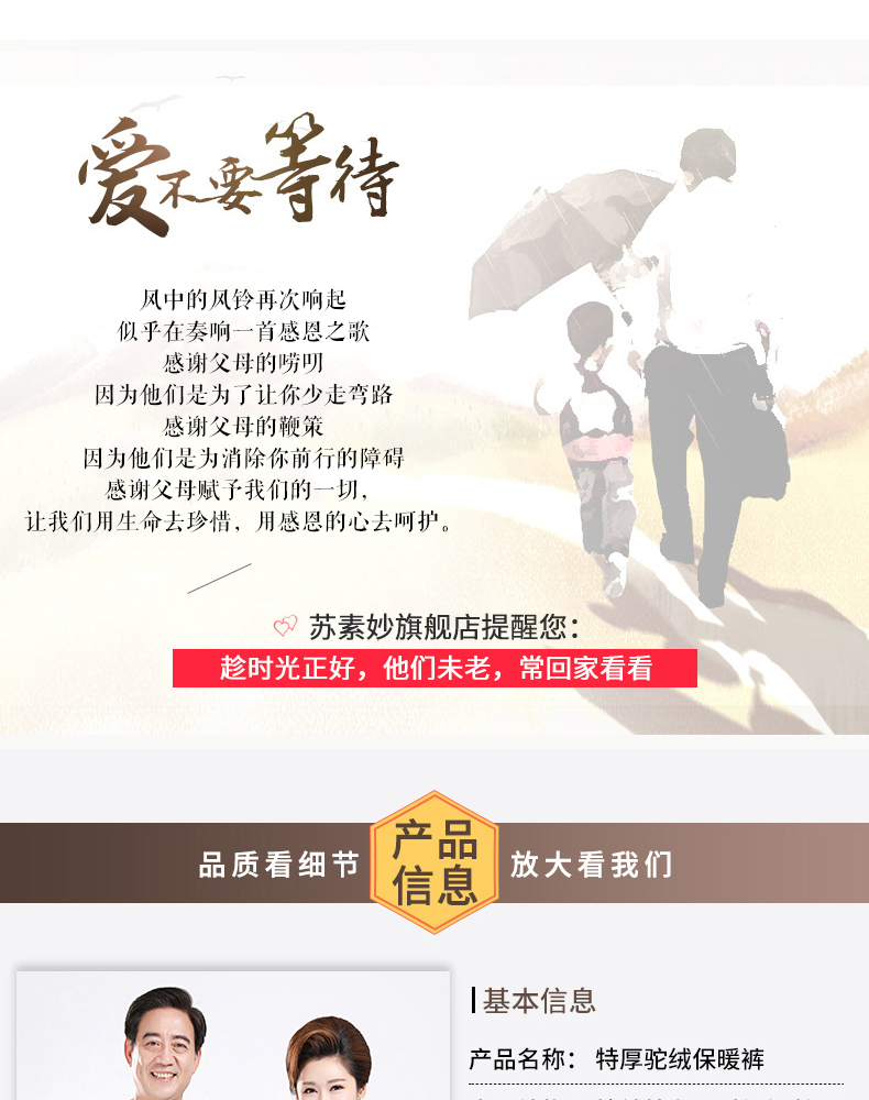 严寒冬季来临,给爸妈送一条好穿又保暖的裤子吧,抗寒轻便,五层加厚,蓬松柔软,黄金驼绒保暖加倍,松紧高腰,穿脱方便,一条就过冬。