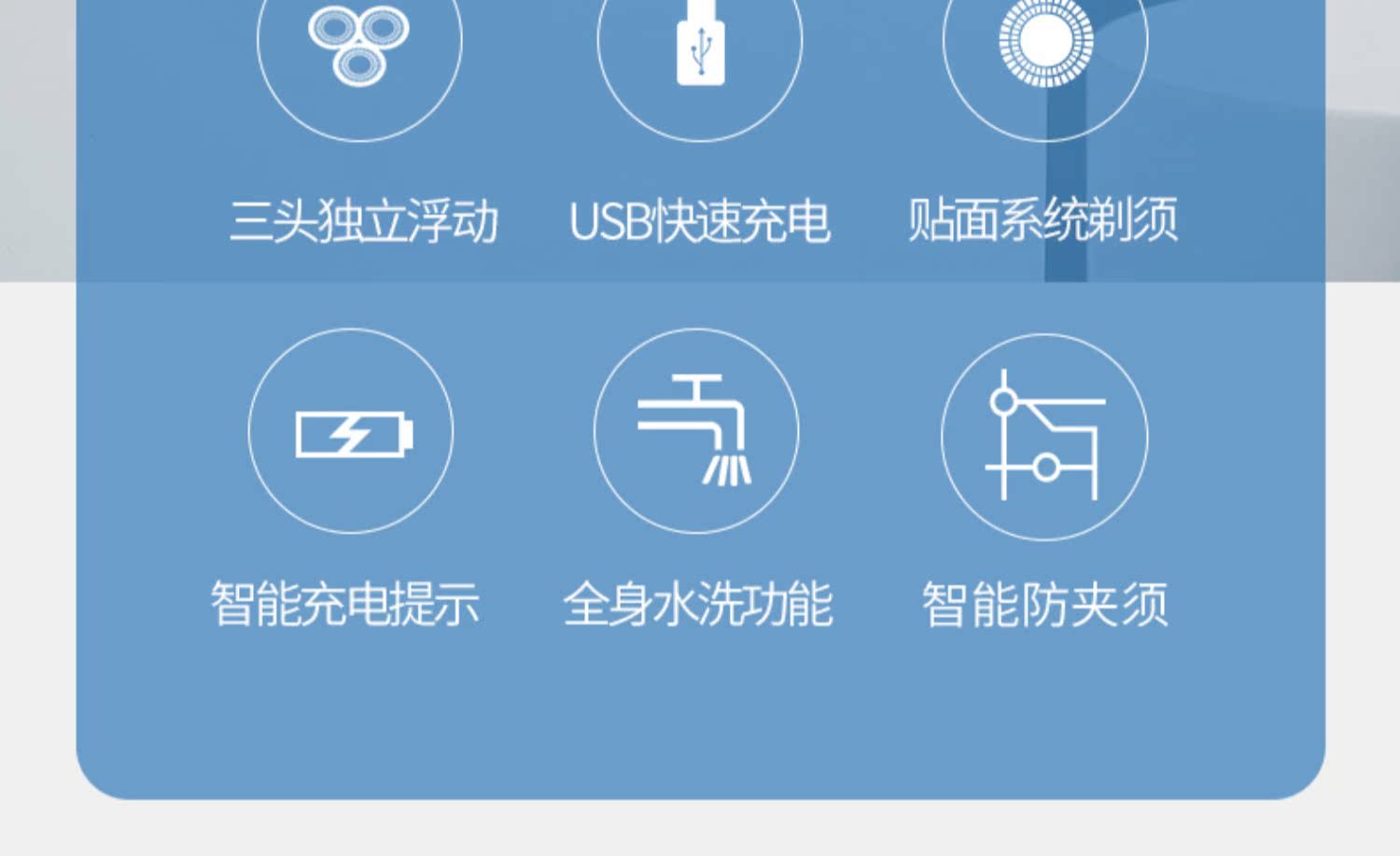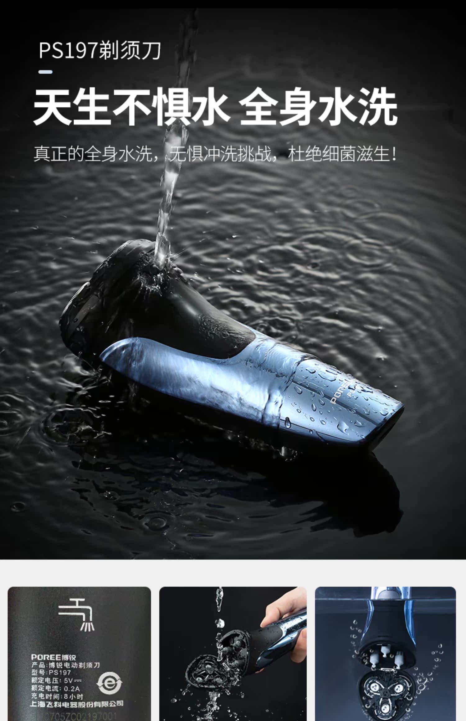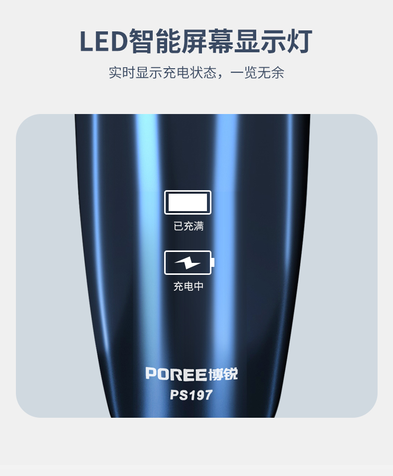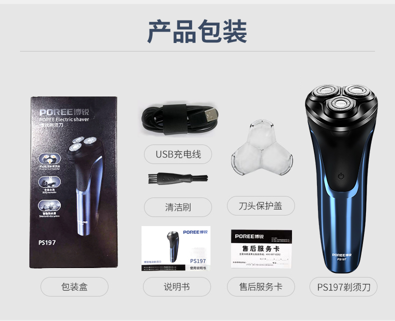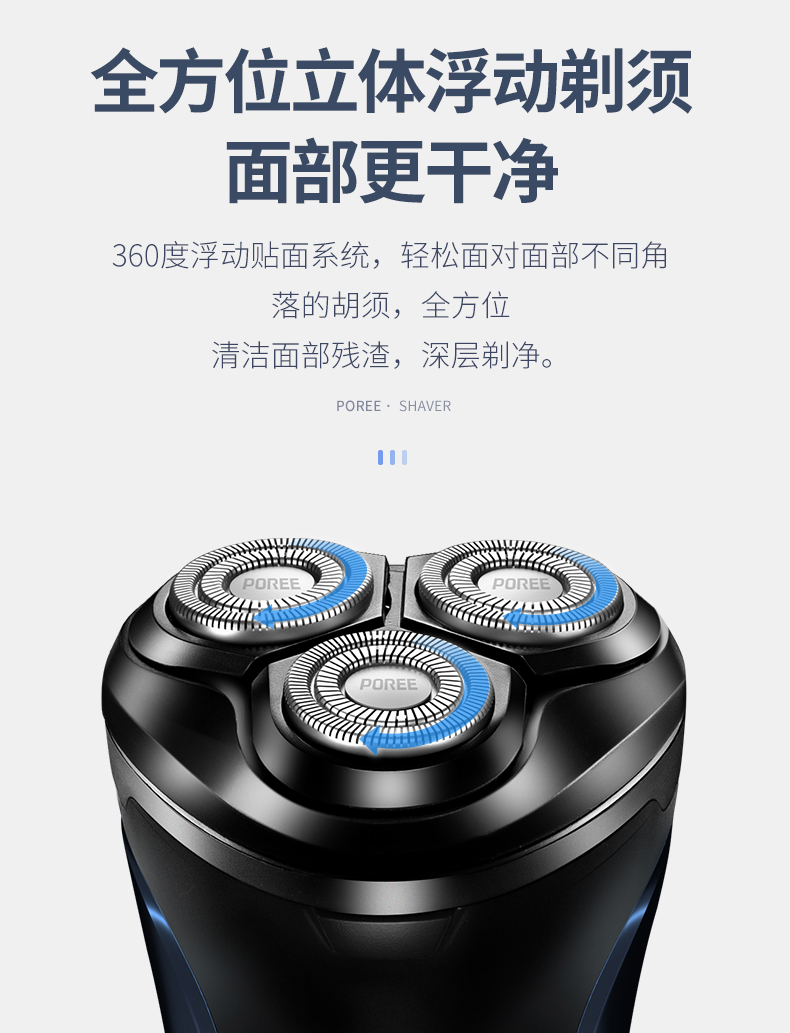 飞科博锐大牌!高颜值镜面机身,全身水洗,3头独立浮动,USB快速充电,液晶电量智能显示,舒适贴面,360度浮动贴面系统,轻松面对面部不同角落的胡须,支持全国2年联保