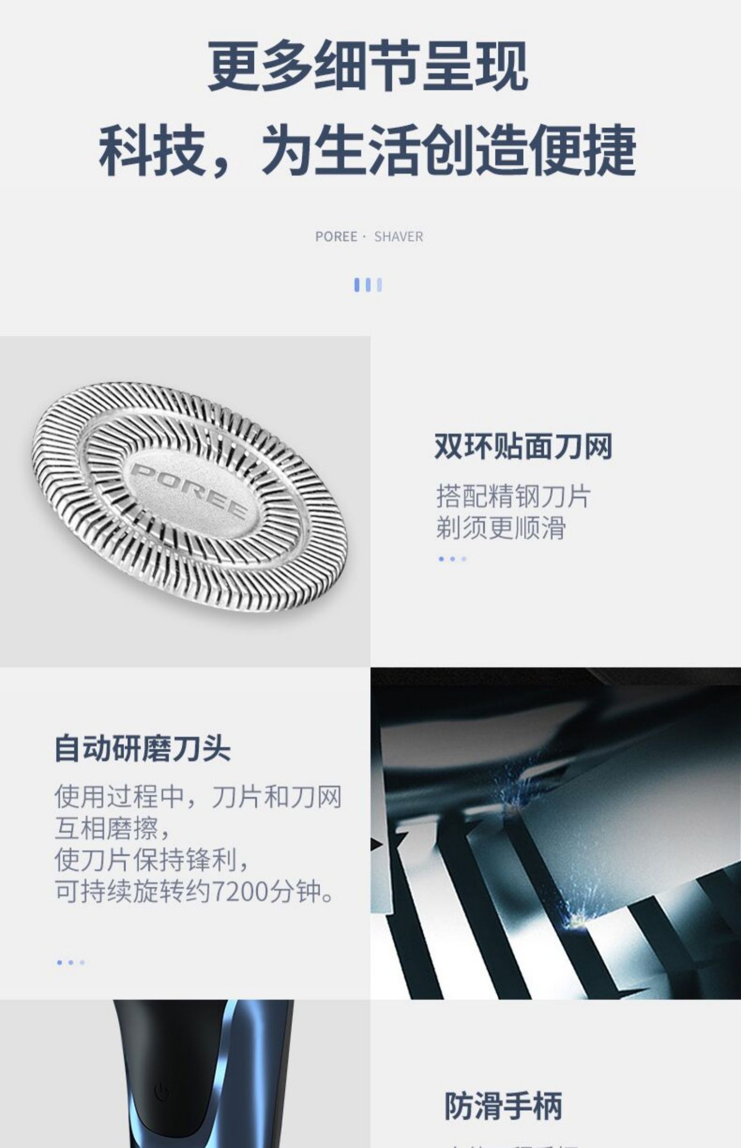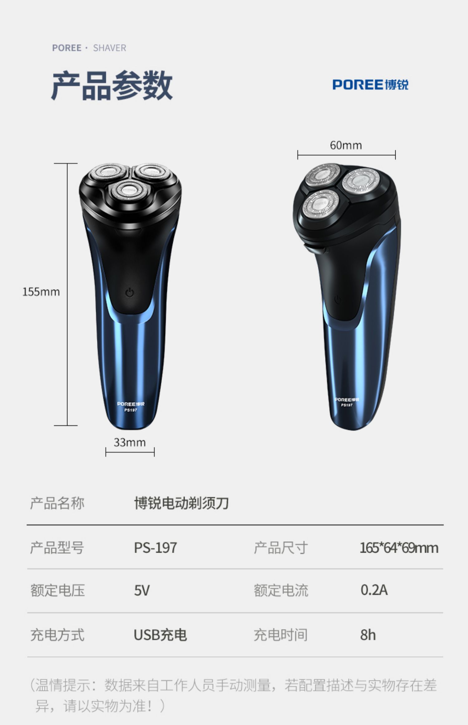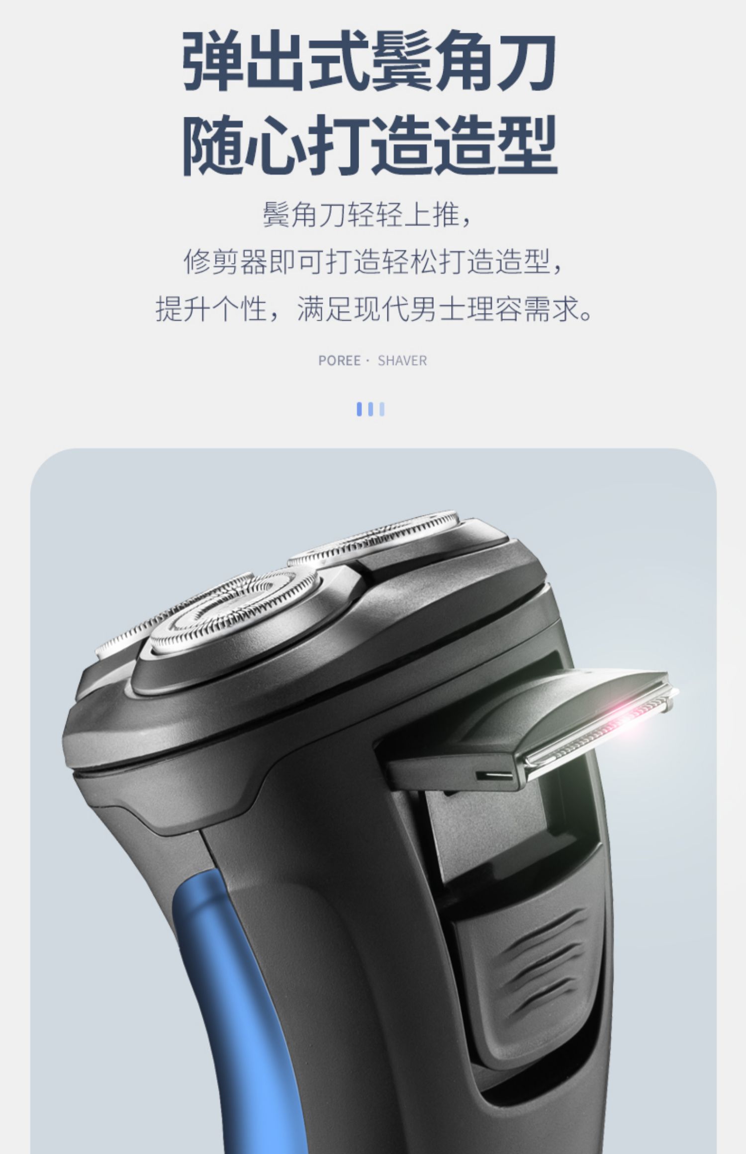 飞科博锐大牌!高颜值镜面机身,全身水洗,3头独立浮动,USB快速充电,液晶电量智能显示,舒适贴面,360度浮动贴面系统,轻松面对面部不同角落的胡须,支持全国2年联保