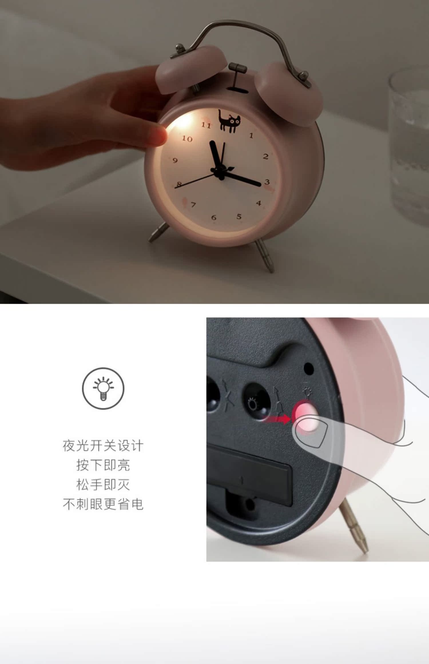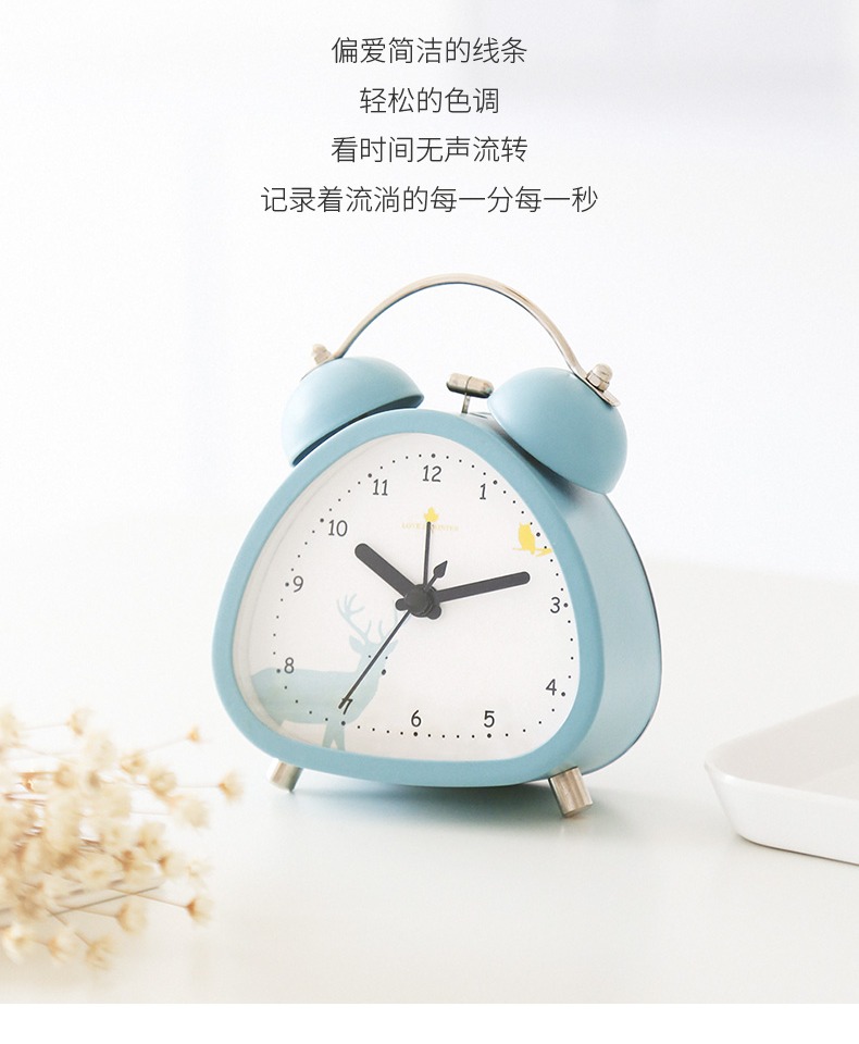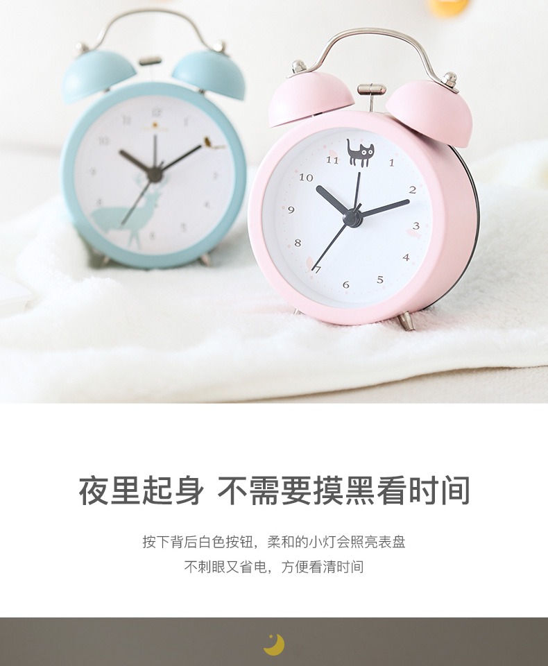 【半年内质量问题免费换新】走时静音,轻妙+打铃闹钟,远离辐射,远离慌乱,远离迟到,多功能调节按钮,高清钟面,还带夜灯功能,不刺眼又省电,方便看时间,轻松管理时间,心情舒畅一整天~