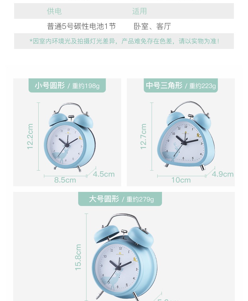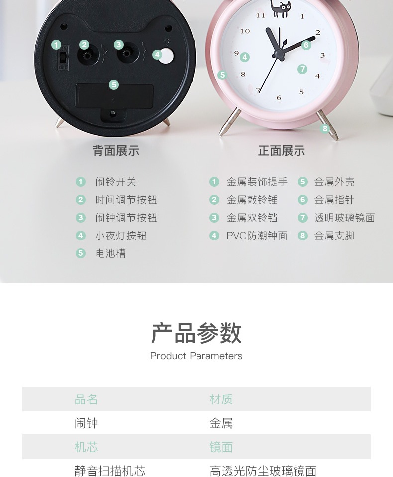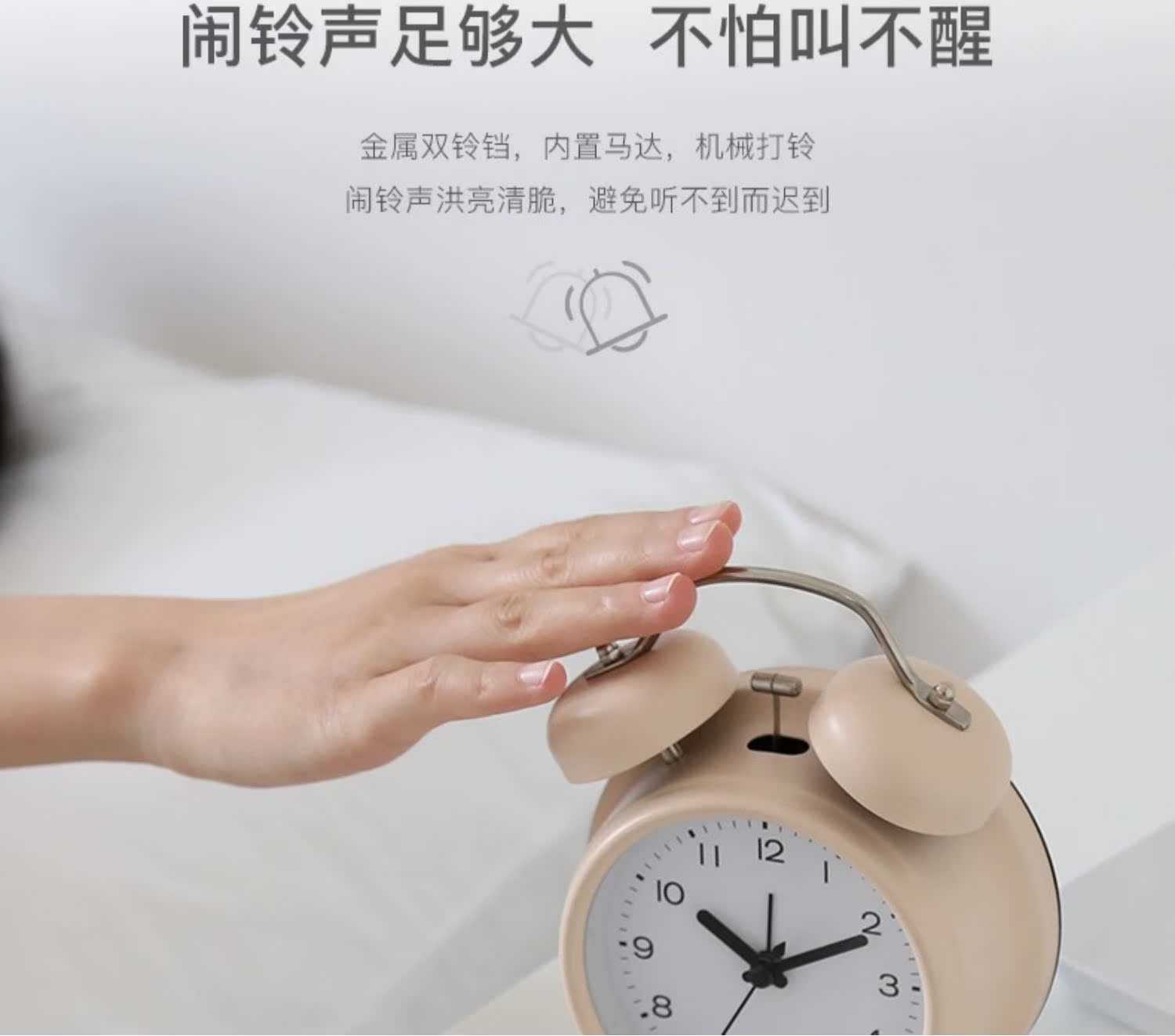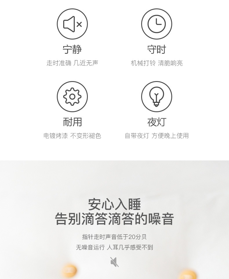 【半年内质量问题免费换新】走时静音,轻妙+打铃闹钟,远离辐射,远离慌乱,远离迟到,多功能调节按钮,高清钟面,还带夜灯功能,不刺眼又省电,方便看时间,轻松管理时间,心情舒畅一整天~