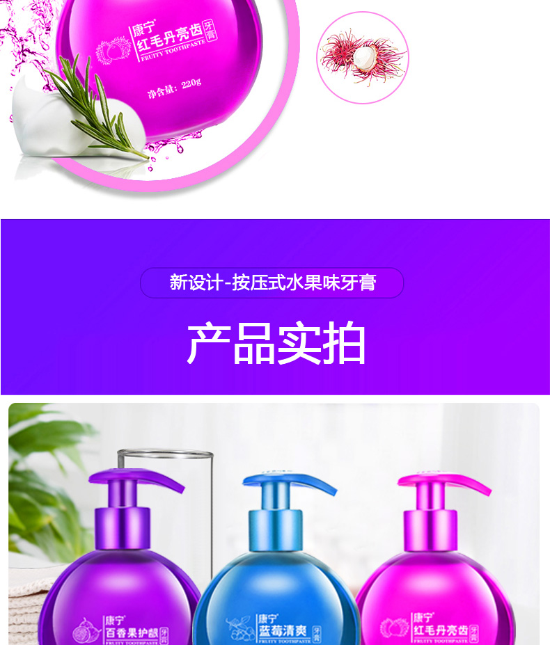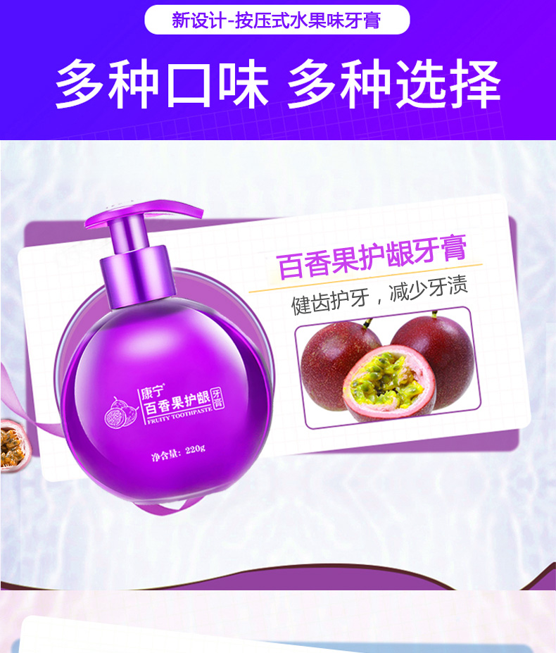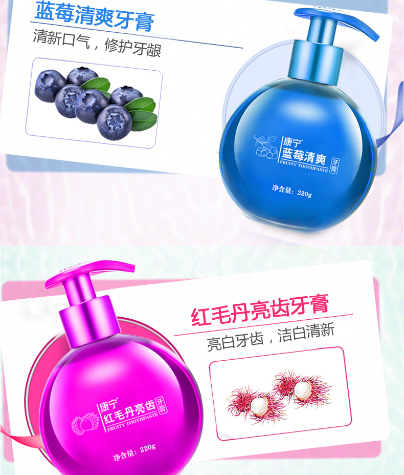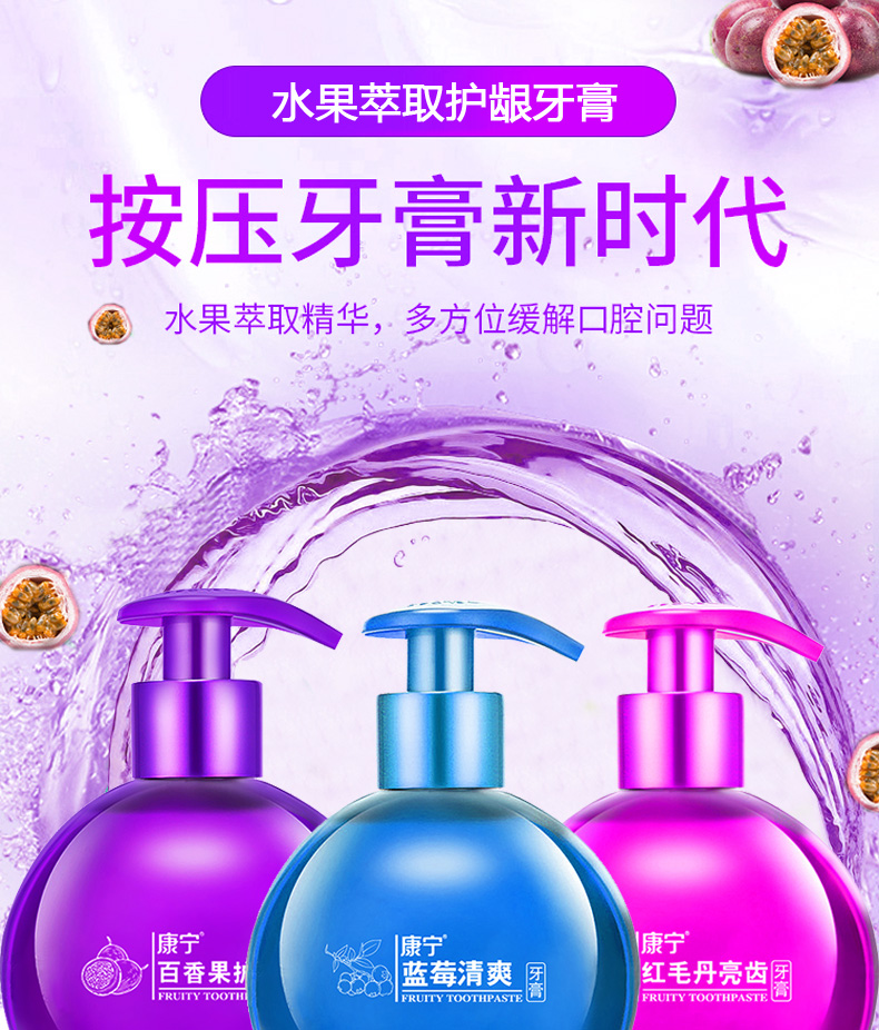 明星都在用的水果牙膏~水果萃取精华,洁牙-护牙-亮白-清新,一步到位!大容量~按压式设计,一瓶抵3瓶!