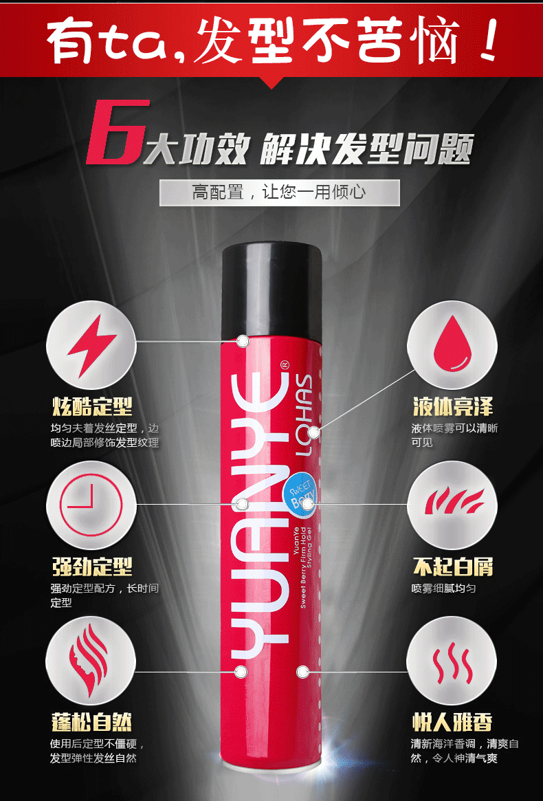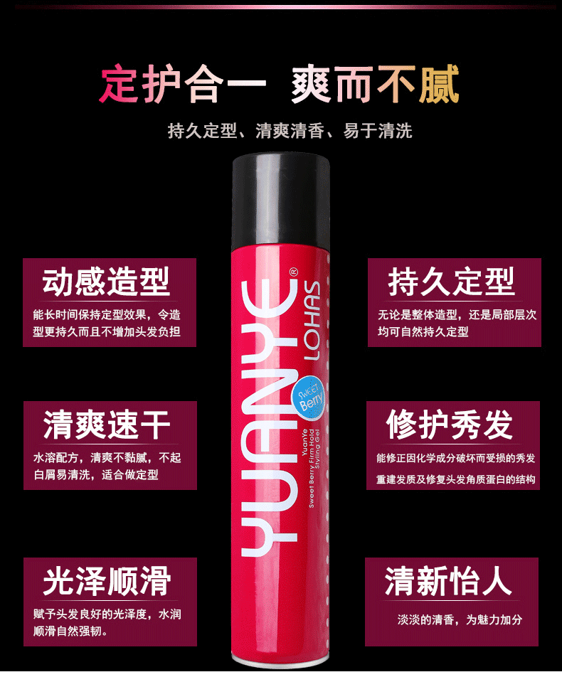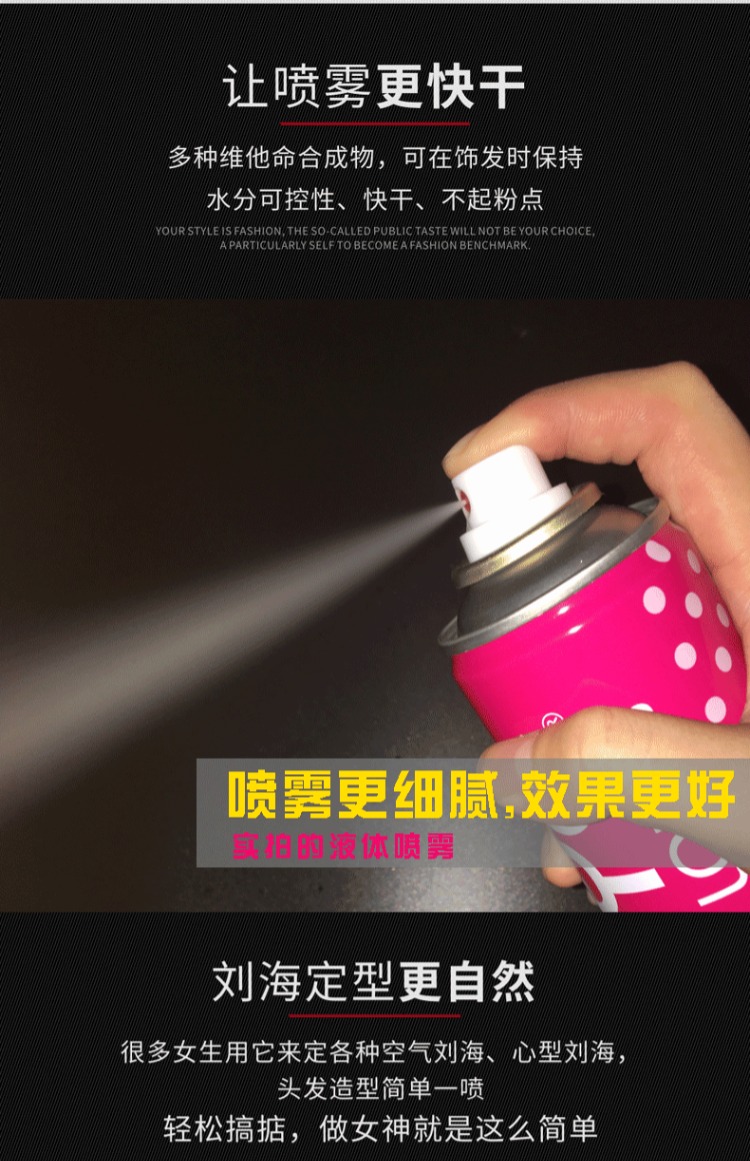 强劲速干喷雾,持久定型,清爽无白屑,男女通用,气味清香,迅速自定义造型,不含重金属,不伤害头发头皮,【赠运费险】