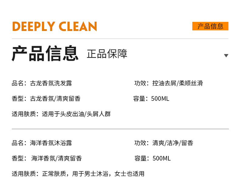 持久留香洗沐套装,抖音同款,开学季必备,海洋香沐浴露(500ml)+古龙香洗发水(500ml)大促价39.99元(包邮)哦