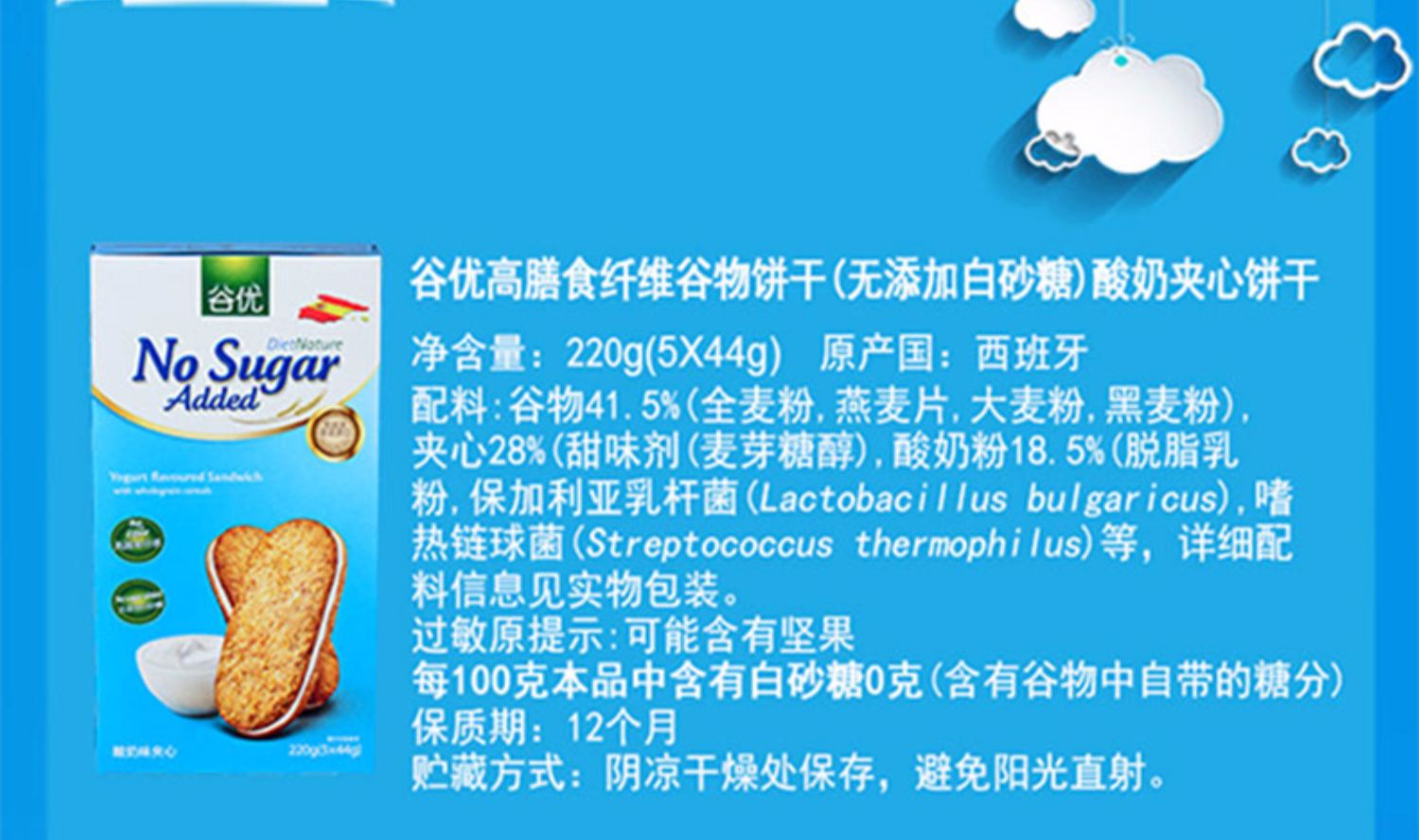 【第二件0元,拍两件27.9元!】西班牙进口,谷优高膳食纤维谷物酸奶夹心饼干,全麦粗粮代餐零食,当酸奶遇上原生谷物,展现黄金搭配,当酸奶遇上浓郁麦香,邂逅奇妙之旅~