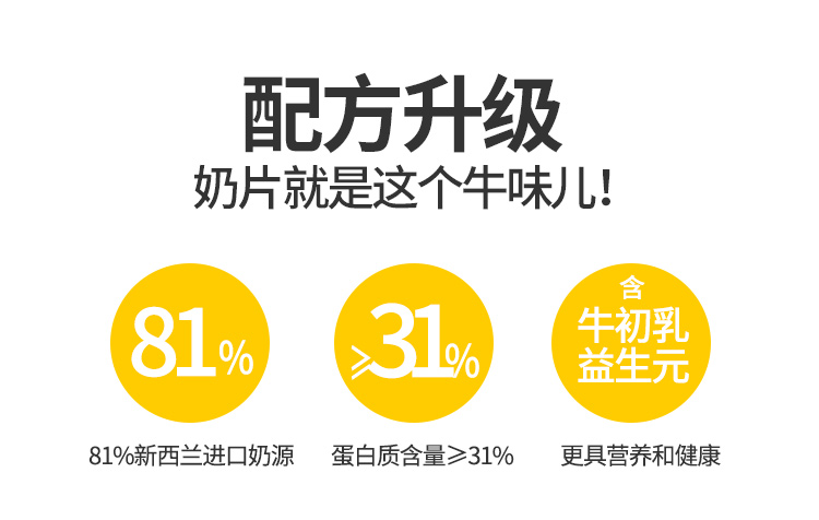 新西兰阳光牧场产出的新鲜牛初乳,蛋白质含量极高,脂肪、糖分含量低,不添加奶精,还富含膳食纤维奶含量高达81%,奶味浓郁纯正,营养丰富又美味,饿了困了随时来一粒~【赠运费险】