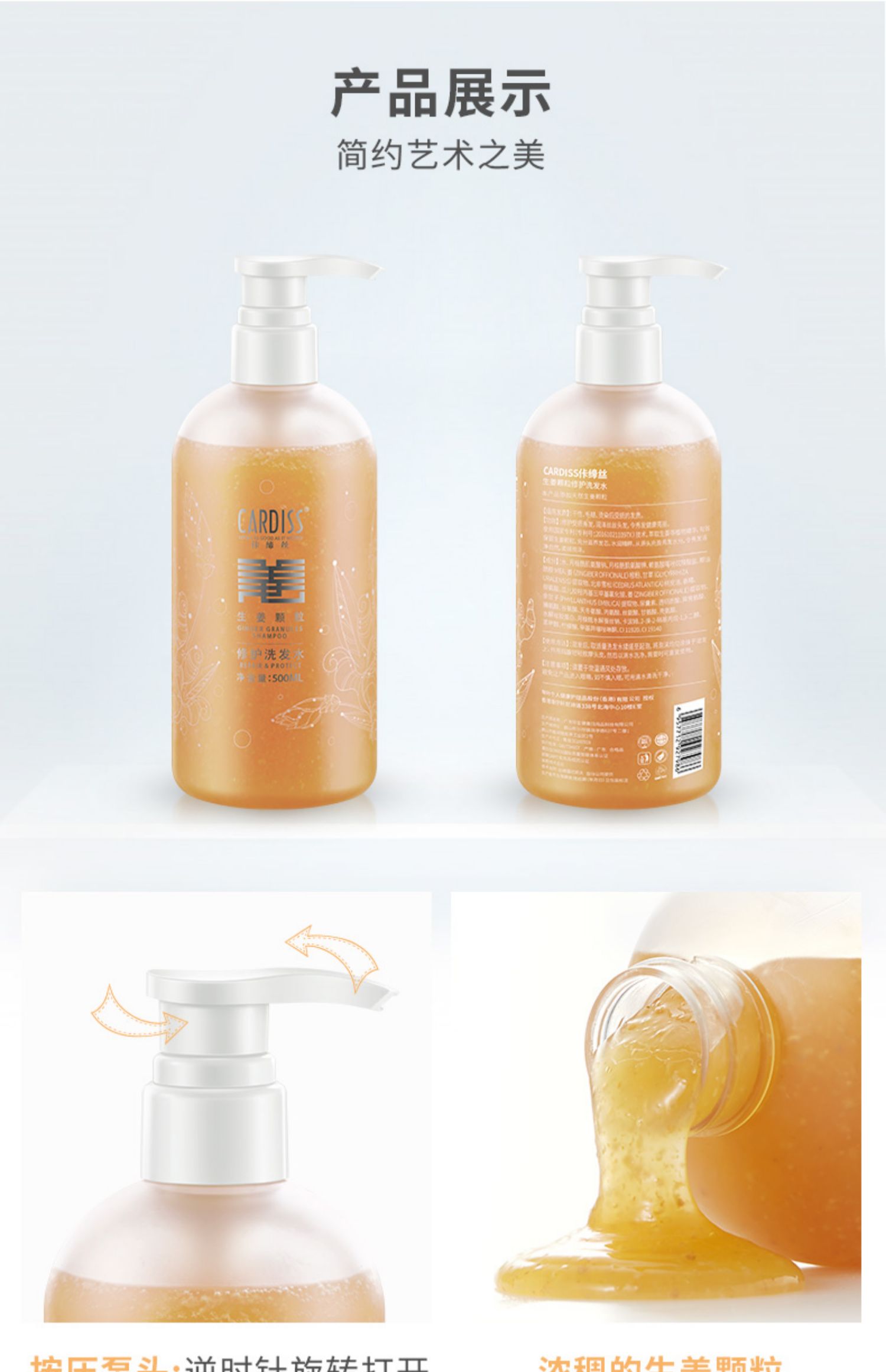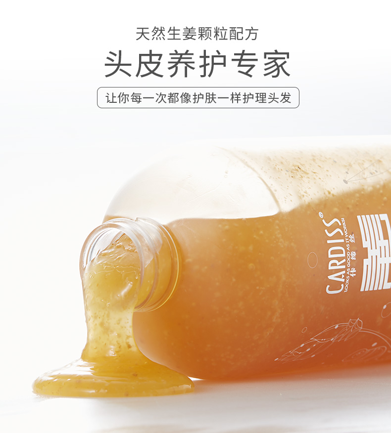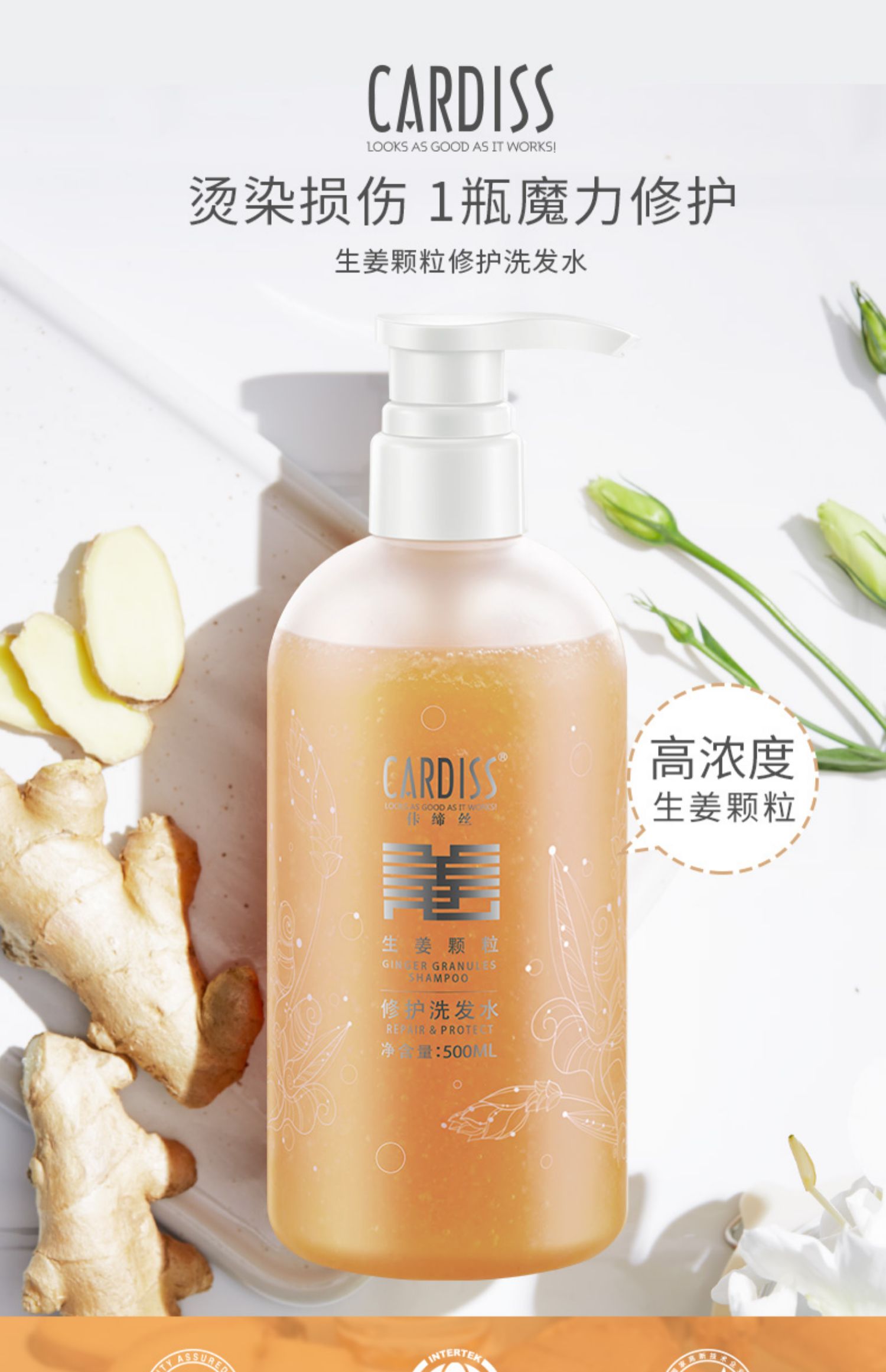 CARDISS佧缔丝生姜颗粒修护洗发水,适合毛燥、烫染受损、凌乱、干枯、掉发等发质,采用高浓度生姜护发配方,多重植物精华滋养护理,由发根到发梢的深层修护!女神一定要有一头漂亮的秀发~