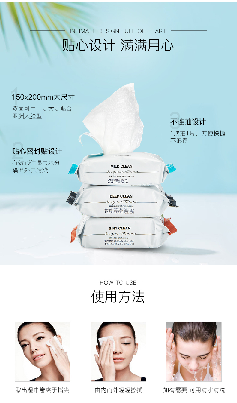 纯植物提取,优质细绒棉制作,不添加任何防腐剂,柔软亲肤,温和安全清洁,一片就能卸净全脸~