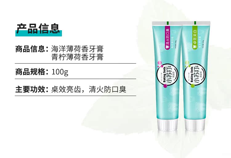 【第二件只需5.99元】海洋薄荷香牙膏2支,护龈清火美白各发一支,早晚无氟健康美白,添加食品级小苏打,去黄去渍,清新亮白,保护牙龈,带你海洋般的洁净