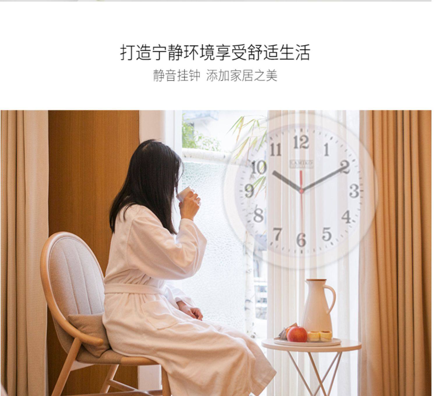 【赠电池+无痕挂钩】直径25厘米,精于芯,美于形,时尚创意,静态静音,北欧式简约款,简洁的线条带来低调内敛的时尚。