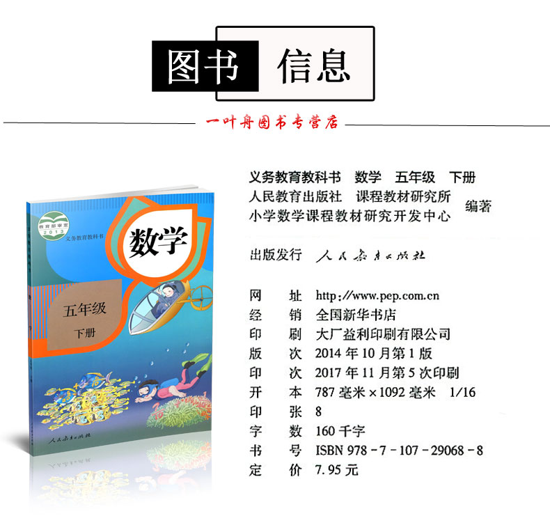 义务教育教科书数学五年级下册人教版,全国通过,官方授权!人民教育出版社!让孩子爱上学习。