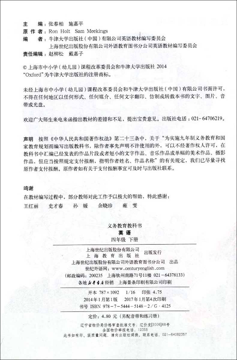 【满1件送任意一件赠品】沪教牛津版英语书四年级下册,教材义务教育教科书,沪教版英语课本,上海教育出版社小学牛津英语课本!