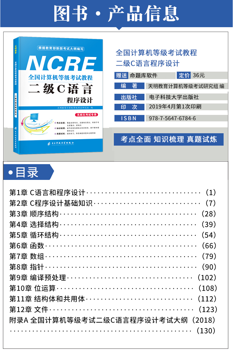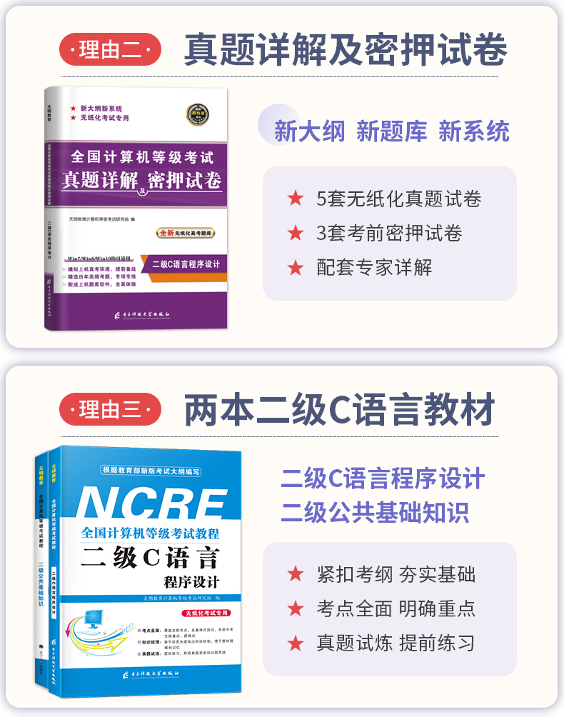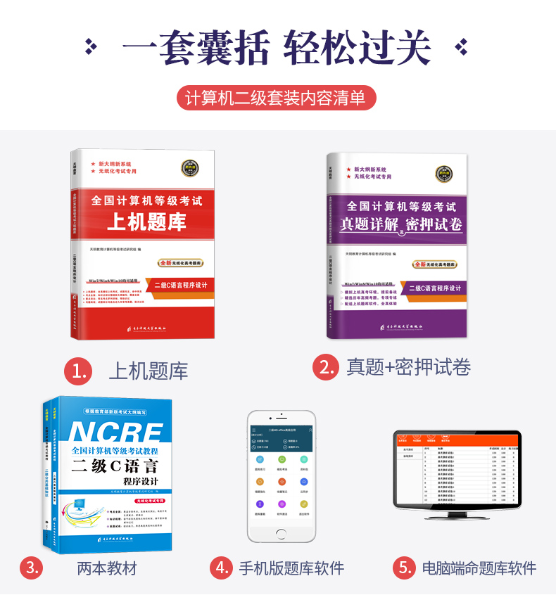 2020计算机等级考试二级C语言程序设计+二级公共基础知识,赠题库软件全套4本,全真模拟,助你一次性轻松过级!