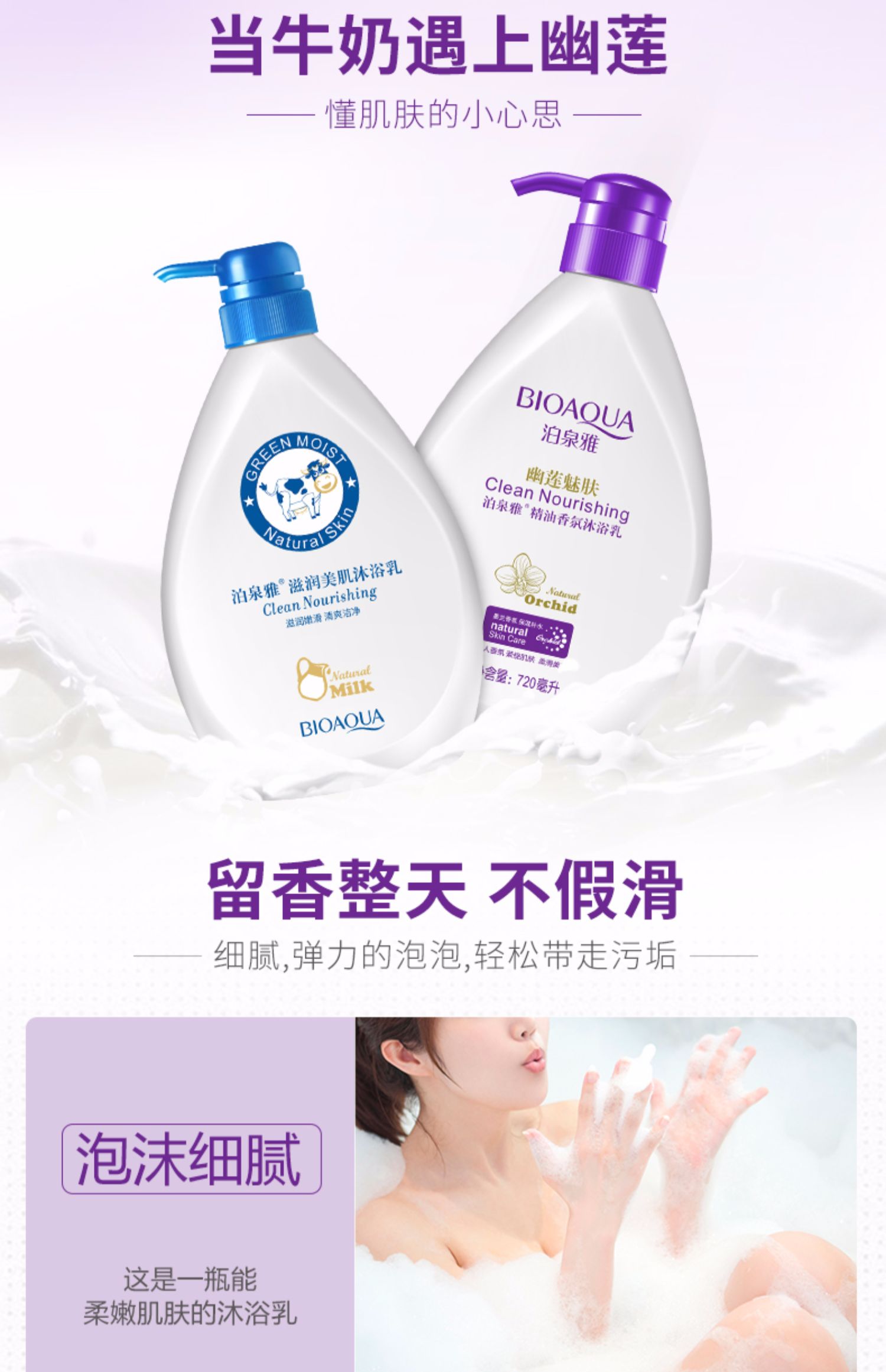 超市1瓶26.8,咱拍3件只要29.9啦,单瓶720ml大容量,牛奶+幽莲中性配方,天然配方,纯净温和,爽滑亲肤,洗澡香香的,能有效滋润肌肤,帮助改善干燥暗沉肌肤,还能留香一整天,买它,买它。