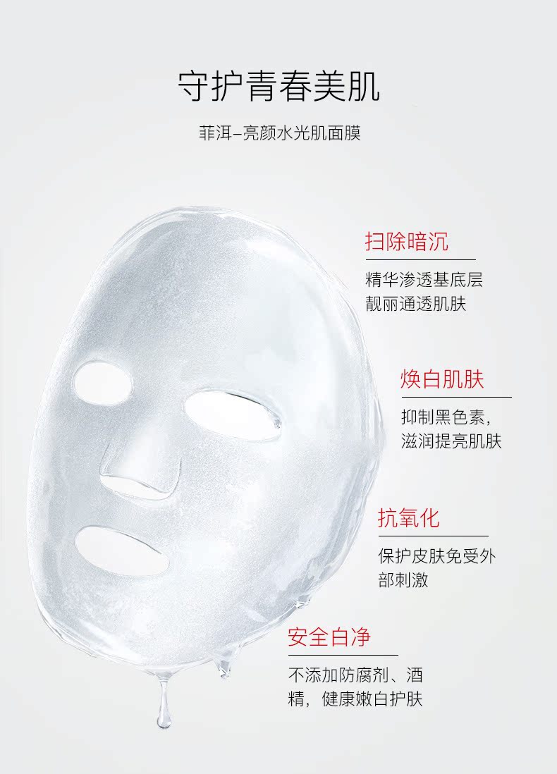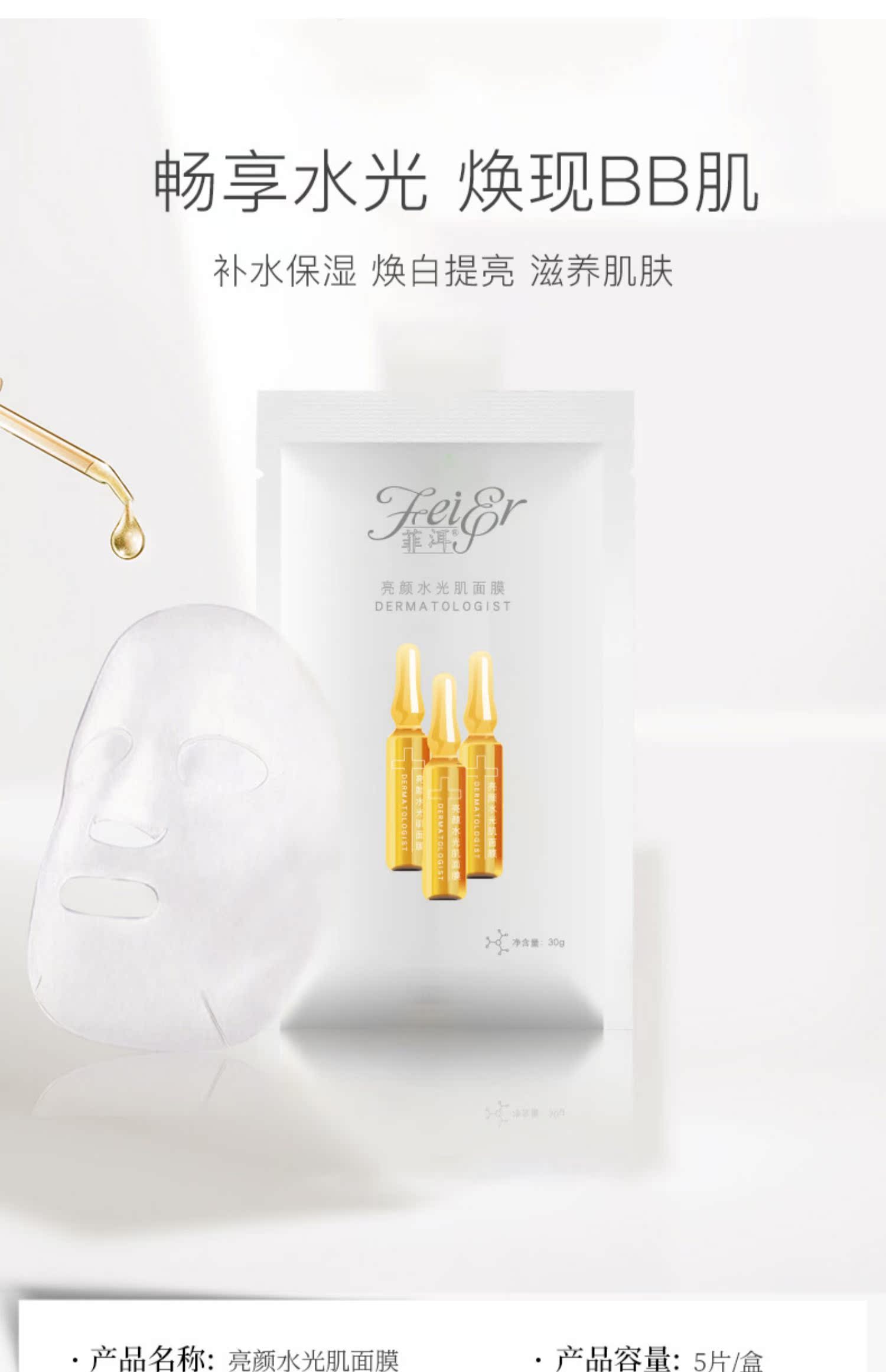 菲洱亮颜水光肌面膜,滋润提亮肤色,淡化并预防黑色素生成,晒后肌肤坑黄褪黑,不添加防腐剂、酒精,金阿康嫩白护肤。