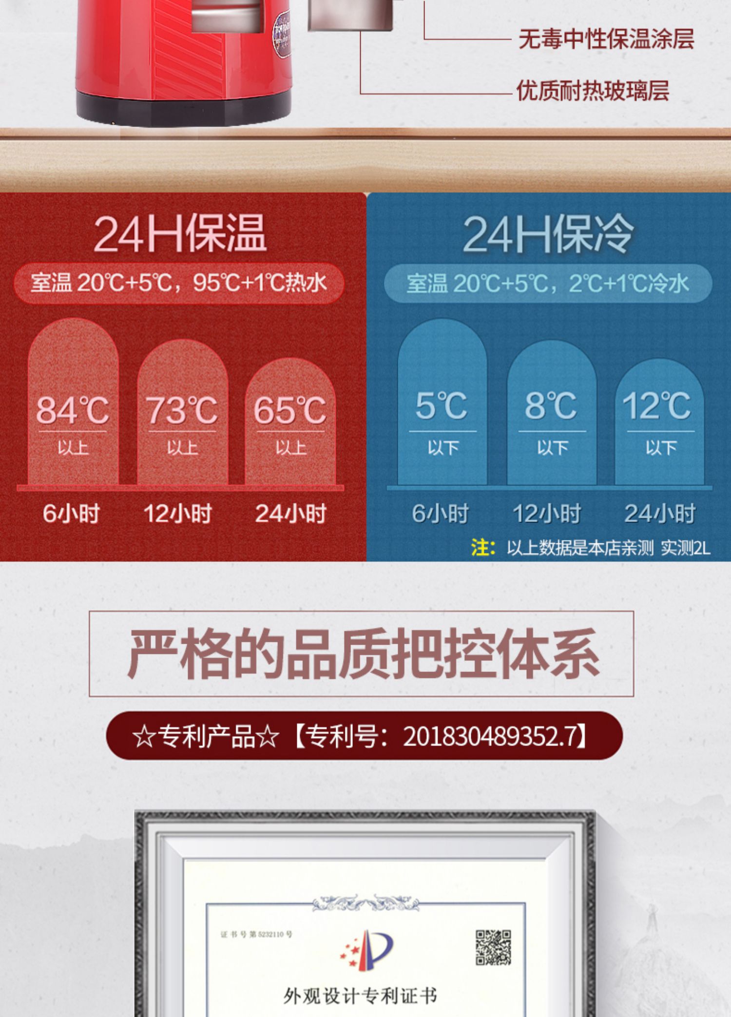 【香港专利品牌,24小时长效保温】真空玻璃内胆,双层镀银耐腐蚀,按压一键出水,控温24H,长效保温保冷,大容量满足每日补水量,实用派生活家居,陪伴您整个春夏秋冬!【赠运费险】