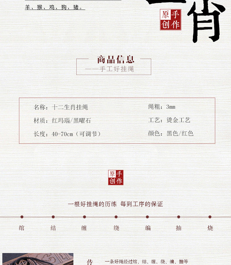 【买二送一】本命年,生肖吊坠挂绳,双向调节,长短随意,手工制作,实用牢固。
