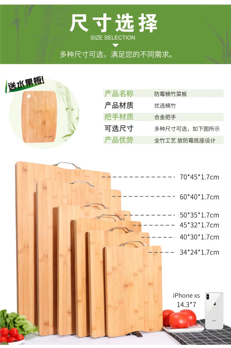 【买就送水果板,18个月开裂免费换新】精选优质楠竹舒适无毛刺,抗菌防霉,整竹面板,无甲醛,板面0胶水,无异味,加厚用料,不变形~