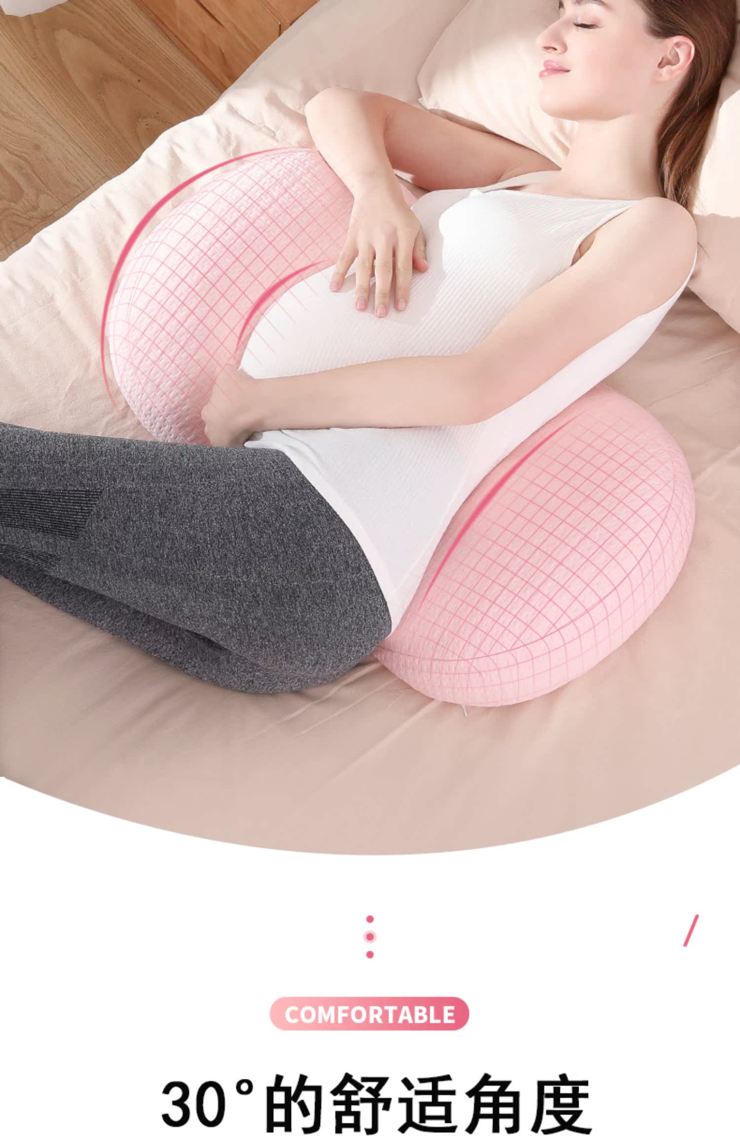 【商品收货立返三元,到手价11.9】欧洲一级认证填充物,无荧光剂,安全放心,枕头柔软Q弹,持久不变形,隐形拉链,轻松拆洗,托腹护腰设计,多种睡姿随意切换,全方位呵护孕妈!【赠运费险】