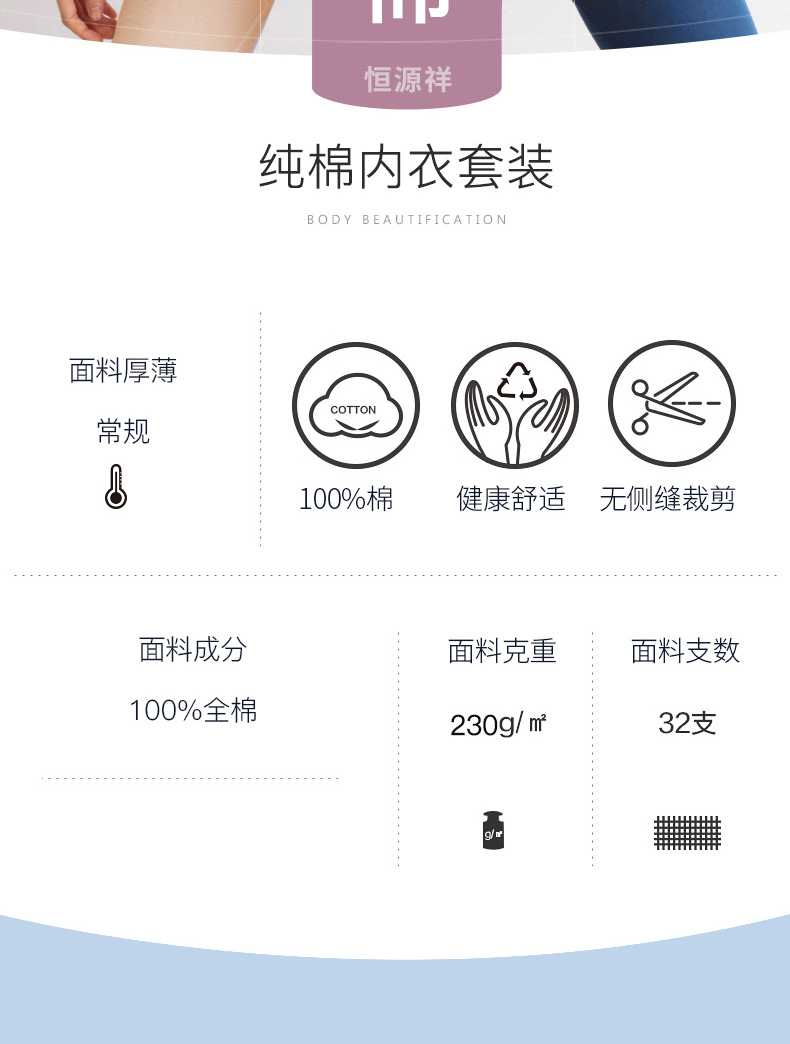 【恒源祥】纯棉保暖内衣套装,健康透气,为保暖而生,为御寒而来。纯棉面料制造,保暖亲肤,立体剪裁,舒适贴合,弹力好,不起球,秋冬保暖必备【赠运费险】