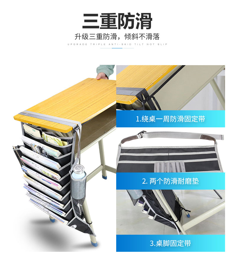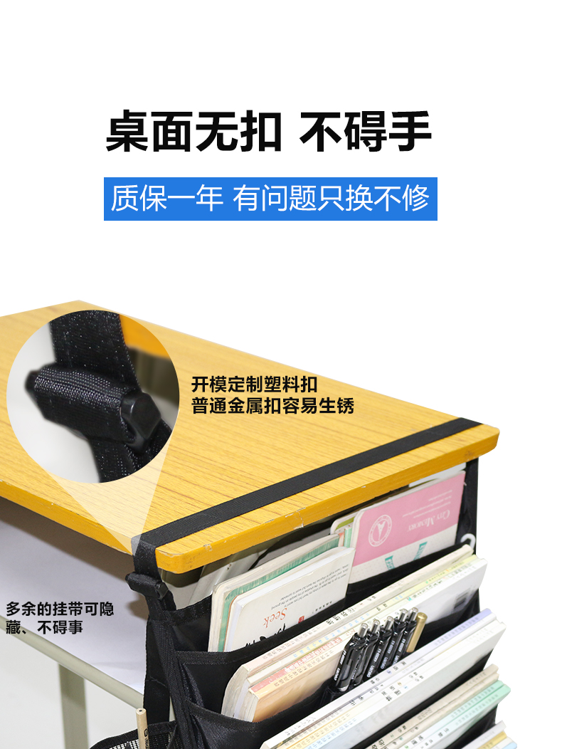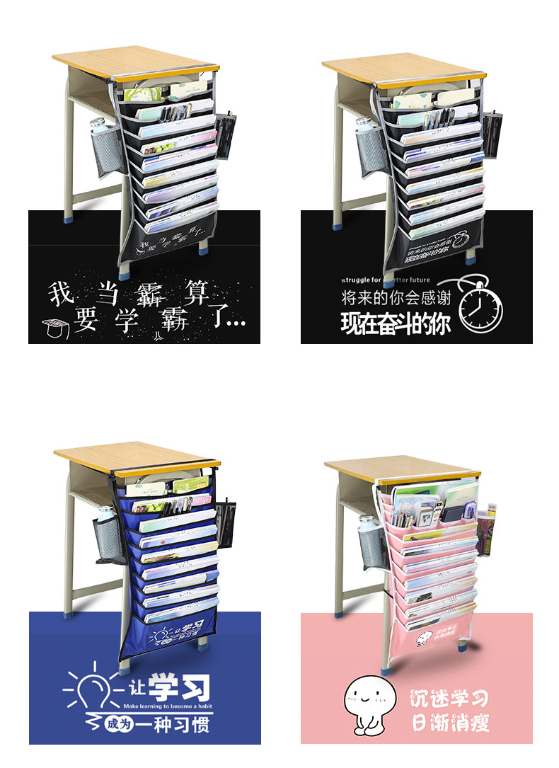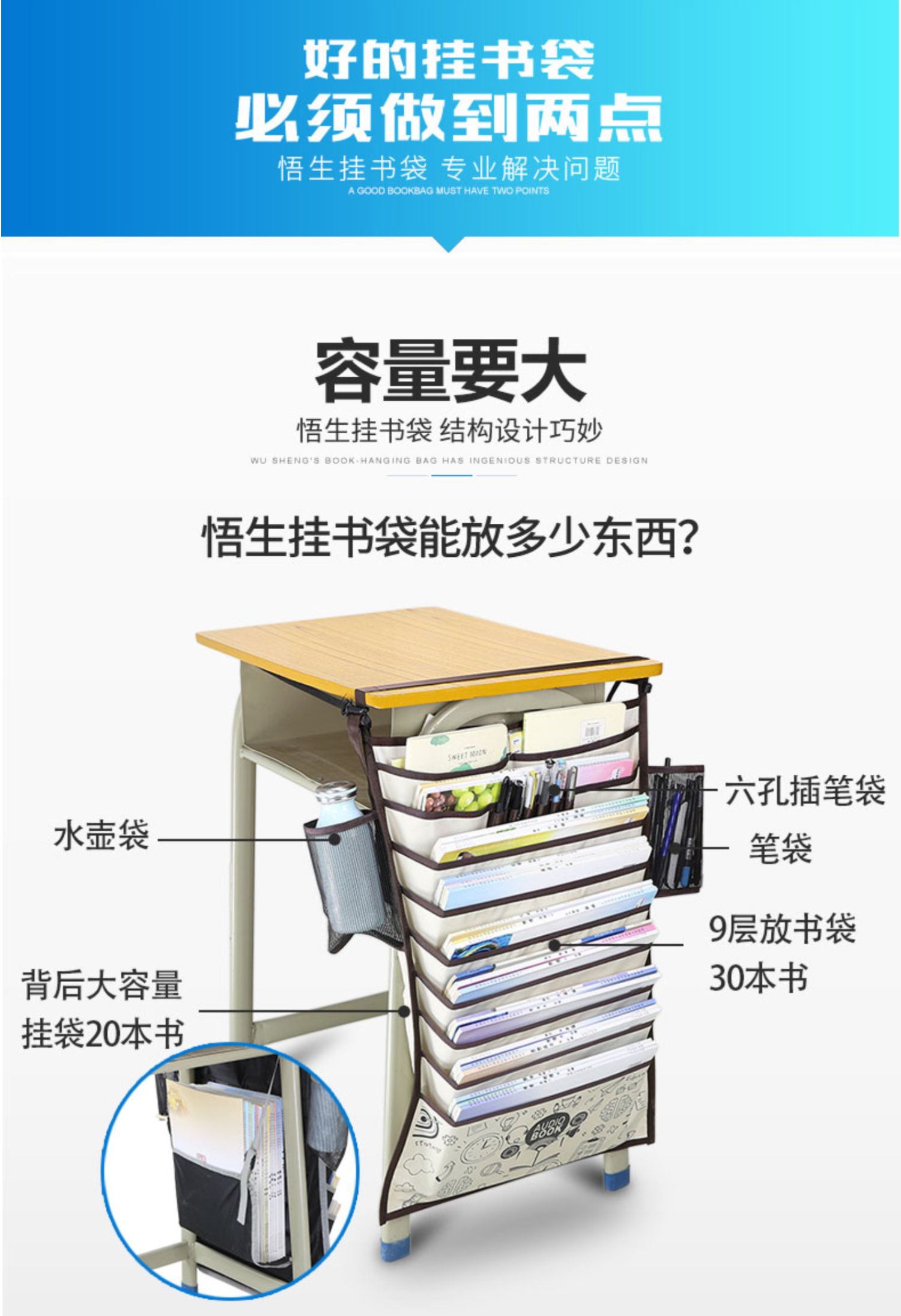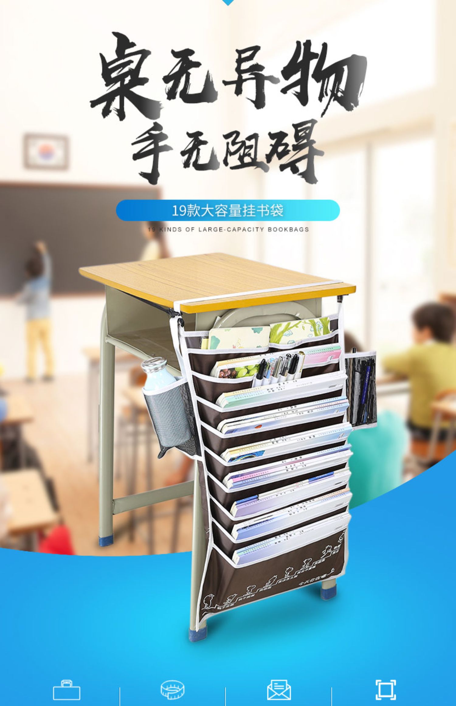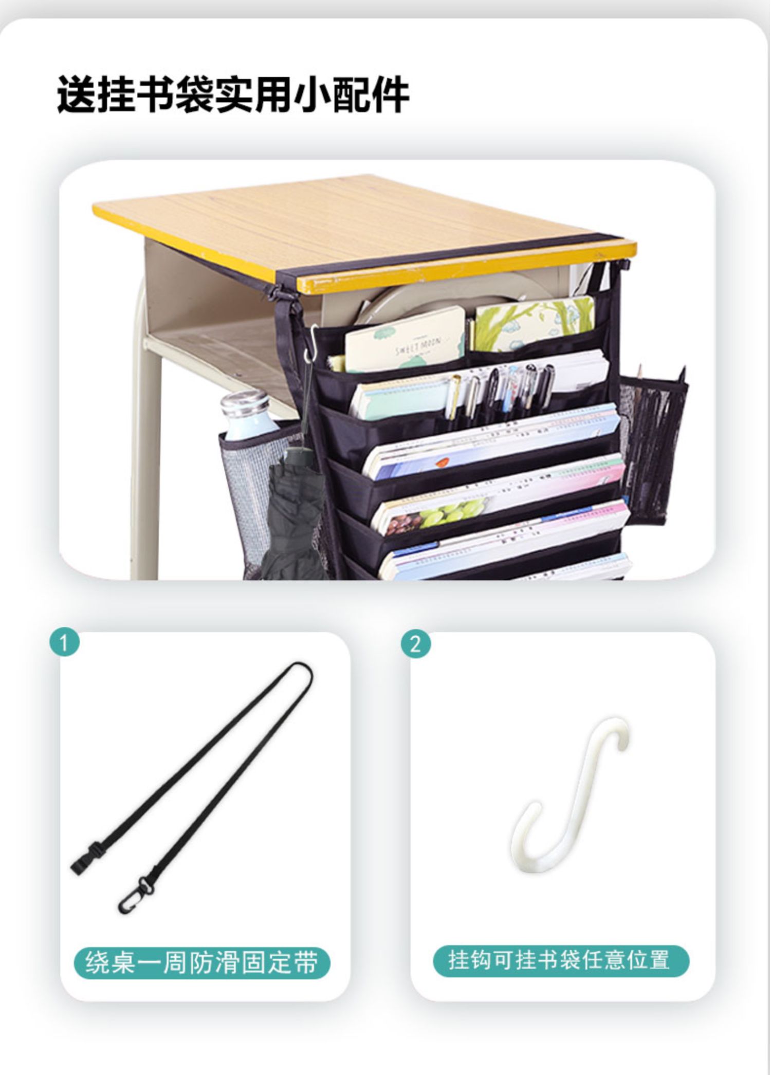 火爆半边天的书袋收纳现货!采用光滑的牛津布面料,抗灰尘,侧袋放水杯,多功能收纳,桌角固定不摇摆,9万多评价,质量看得见。【赠运费险】