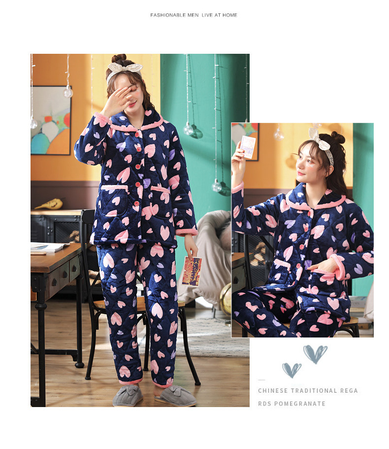 【三层夹棉加厚】珊瑚绒家居服睡衣套装